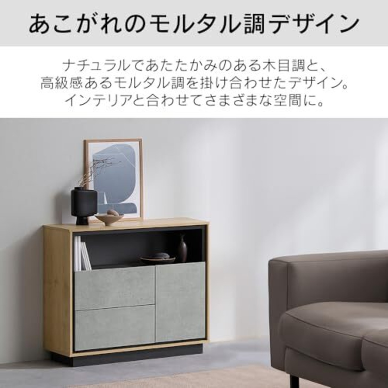 キャビネット 棚 収納 リビングキャビネット LVCM-795 ナチュラル/モルタル チェスト キャビネット サイドボード モダン タンス 棚 収納 LVCM コンパクト 可動棚 モルタル調 コンクリート調 シンプル 木目調 おしゃれ アイリスオーヤマ