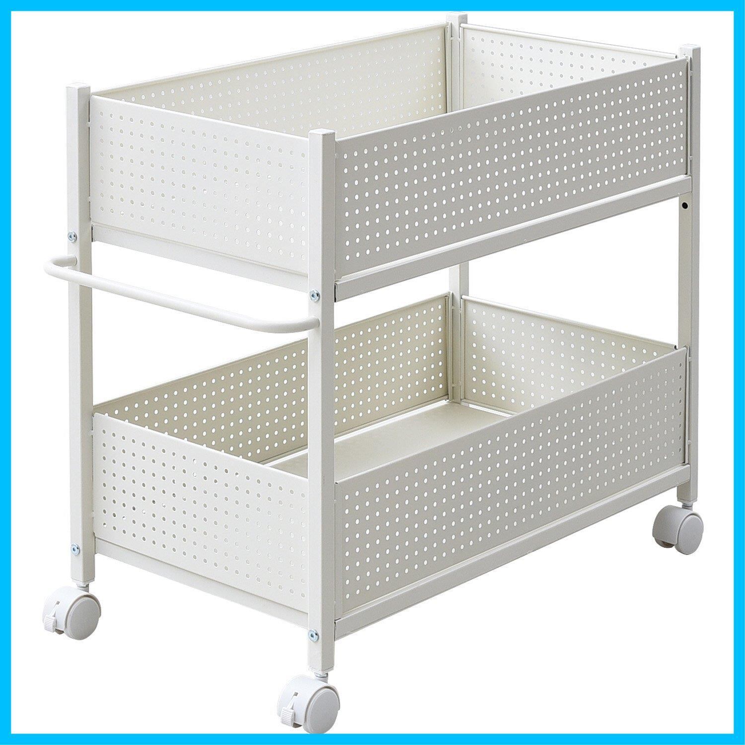 【新着商品】山善(YAMAZEN) 押入れ(クローゼット)収納 ラック 幅38×奥行75×高さ64.5cm 取っ手 ストッパー付きキャスター 上段下段かご 横板が取り外せる 組立品 ホワイト/ホワイト OPR-7538(WH/WH)