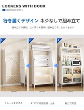 【高さ調節ロッカー】ロッカーにある鉄板の置く位置(下から第二段の収納エリア)は変えられます。5段階(毎段階の距離は5cm)に調整可能、収納物に合わせてお使いいただけます。ロッカーは密閉設計で防塵効果があり、ネズミやゴキブリなどの生き物対策も効いています。