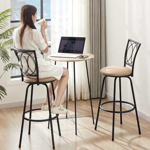 VECELO カウンターチェア バーチェア [2脚セット] ハイチェア 足置き付き 背もたれ付き 弧線 スチール 360°回転座席 高さ調整可能 カウンター キッチン コンパクト 軽量 おしゃれ バーカウンター 【日本正規輸入品】