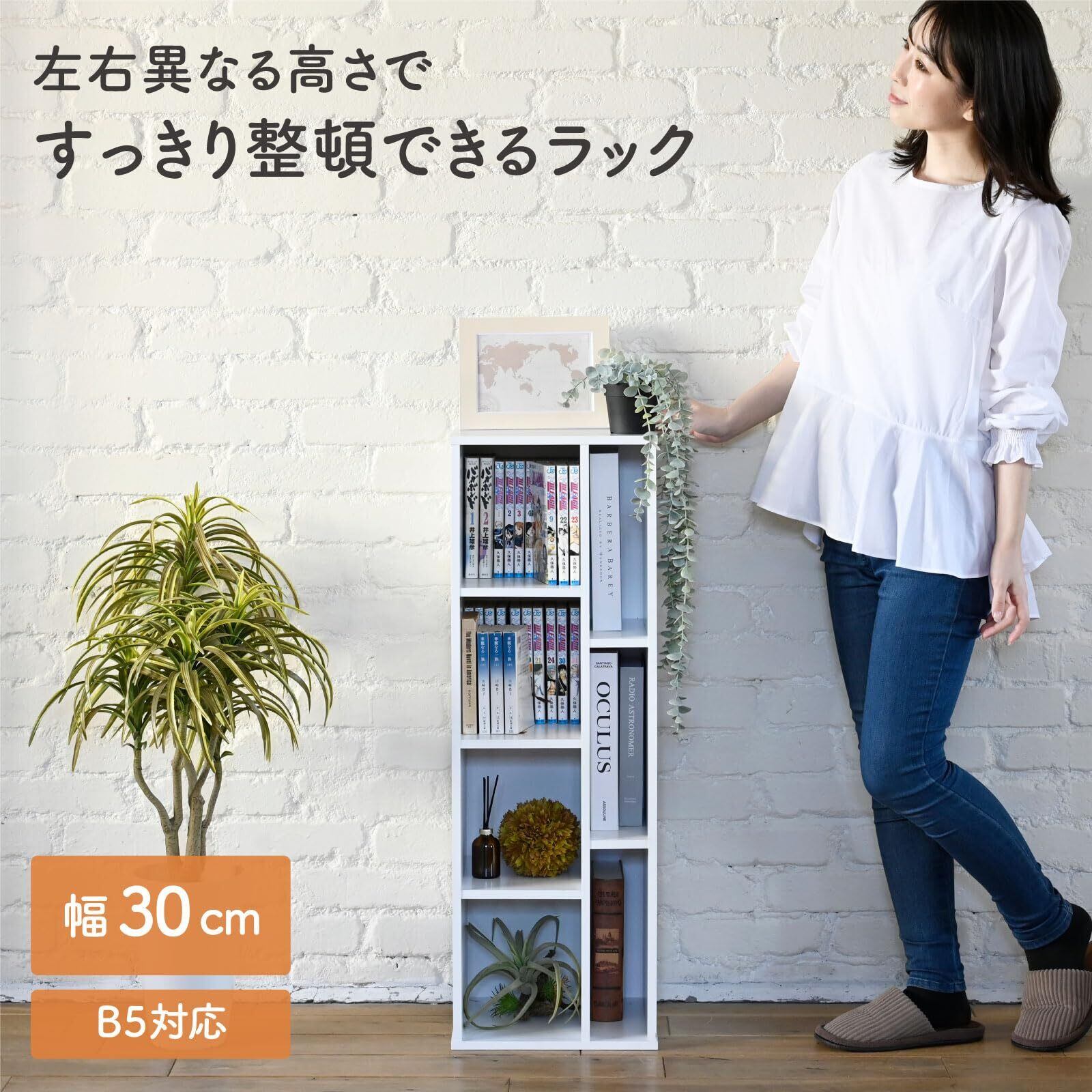 【多目的に使えるラック】整理整頓に役立つ、収納棚です。漫画本や絵本など、異なる高さの本を左右に分けてすっきり収納できます。