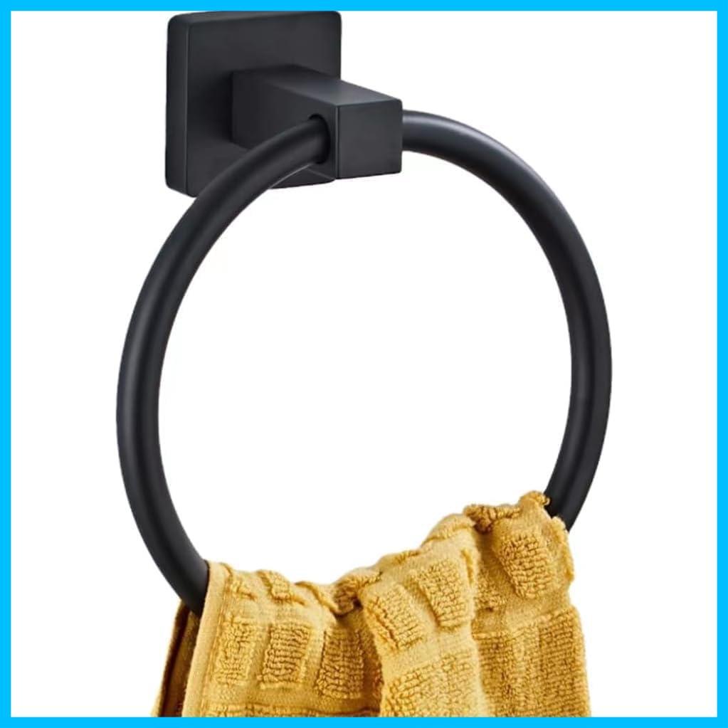 KWQKEMタオルリング タオル掛け おしゃれ タオルホルダー タオルハンガー 180°回転 シンプルモダン ステンレス 壁掛け 収納 トイレ 洗面所 キッチン用 ネジ付き リング内径140mm
