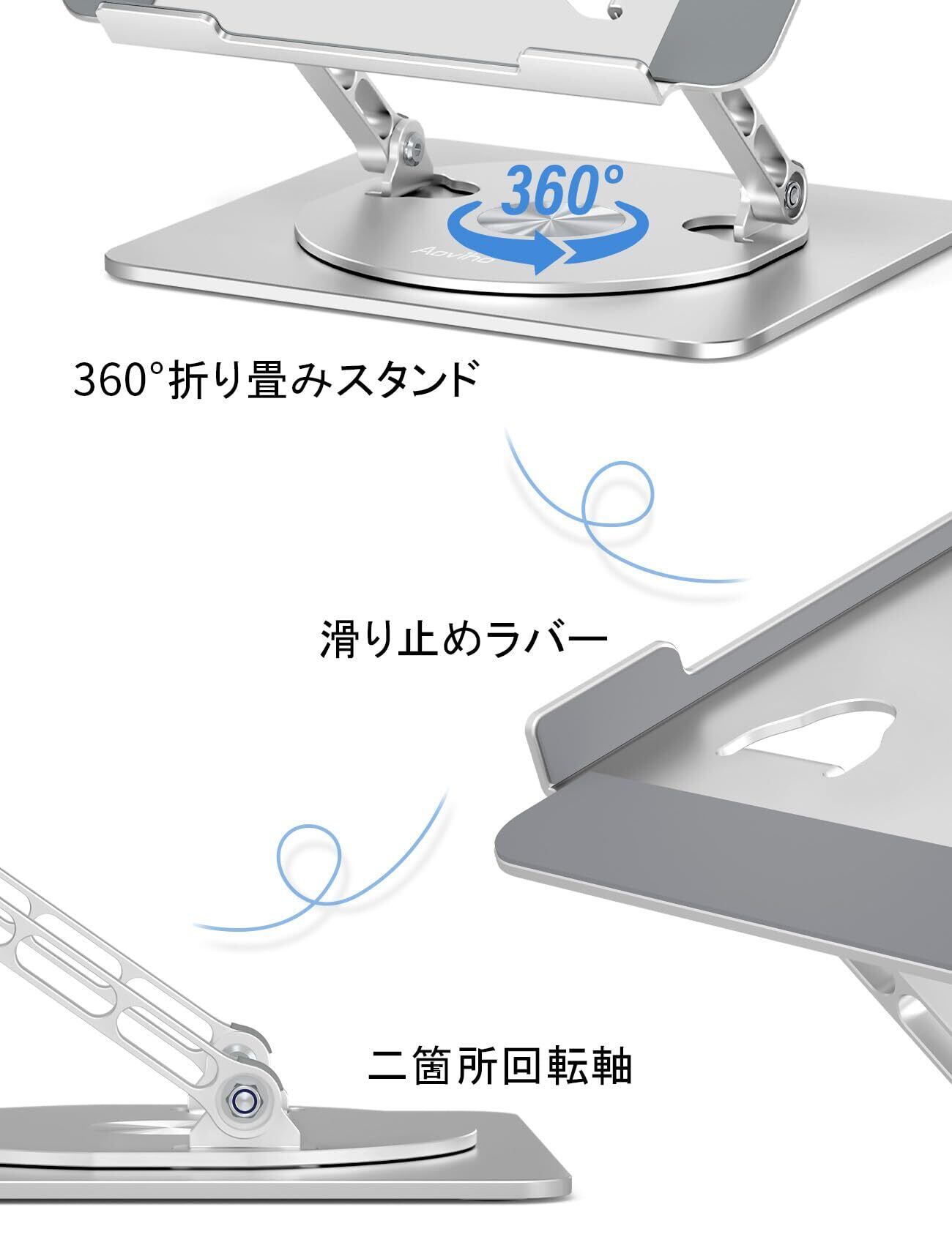 アオビホ(Aoviho)-ノートパソコンスタンド- ホルダー PC 360回転式 人間工学 無段階高さ&角度調整可能 姿勢改善 腰痛&猫背&肩こり解消 滑り止め 在宅仕事 つくえ 机 省スペース アルミ製折り畳み可能 ZOOM会議 Macbook Air,Macbook Pro,iPad,16インチまでのノートパソコンやタブレットに対応 (シルバー)