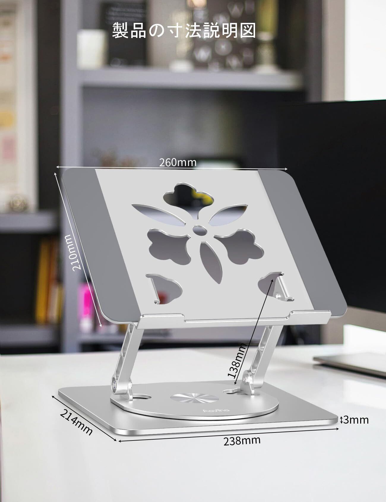2、【360回転式&人間工学&ジオメトリパラメーター調整可能】人間工学デザインにより、高度と角度を無段階調整可能です。PC作業やタブレット用途等、お好みに合わせて、高さや角度を調整し、方向を回転させることで、在宅勤務でも楽に作業できます。パソコンスタンドを使用すると、ラップトップと人の視線は一致し、それと姿勢が正しくなり、背筋が伸び、長い間のデスクトップ作業で、人の首と肩に負担を軽くでき、猫背や腰痛など有効に防止できます。