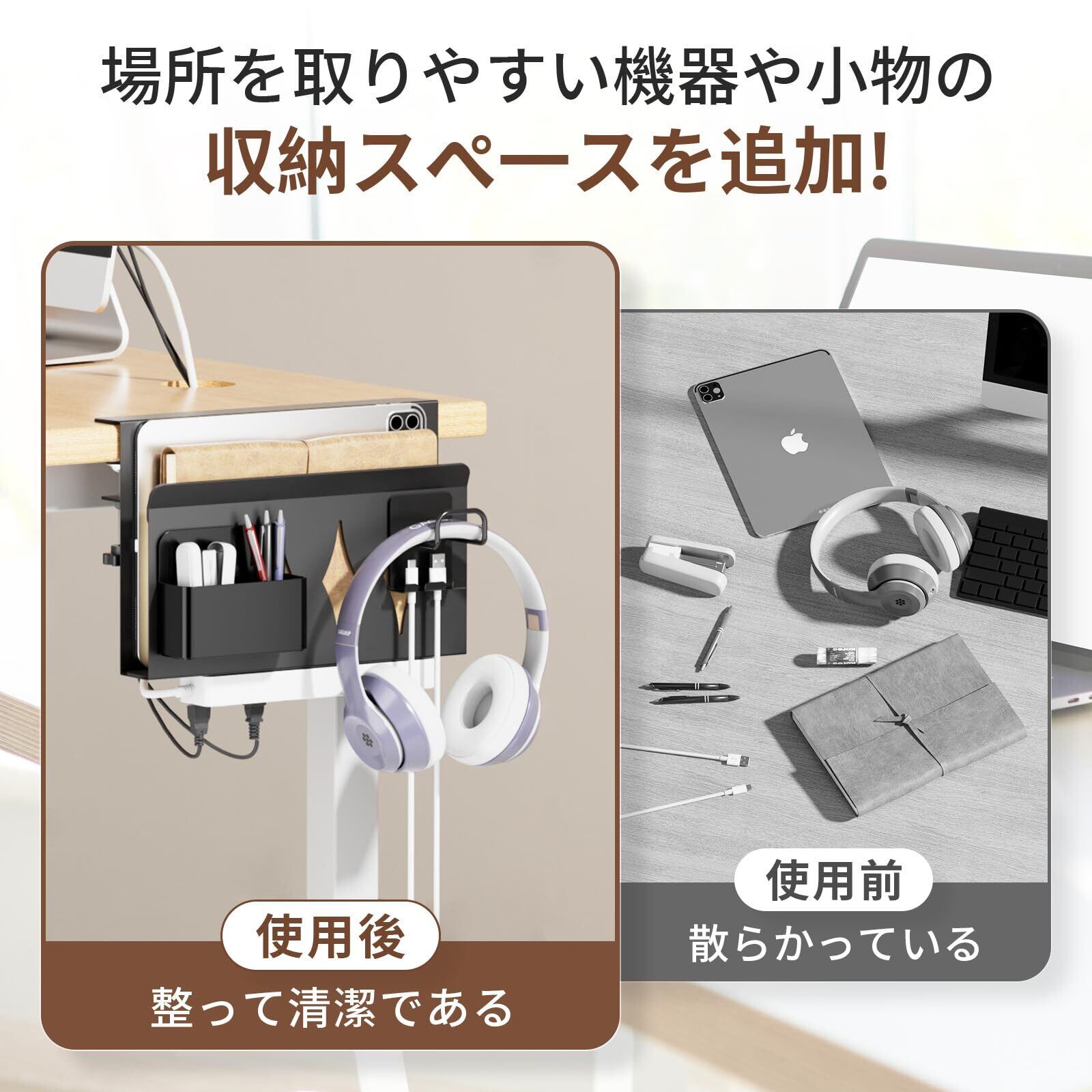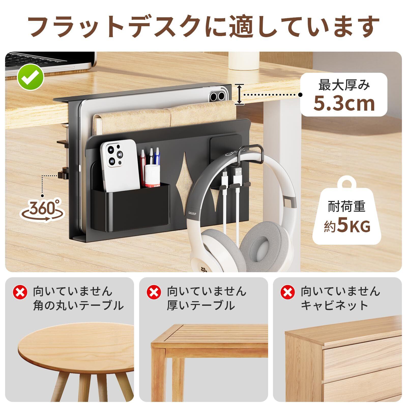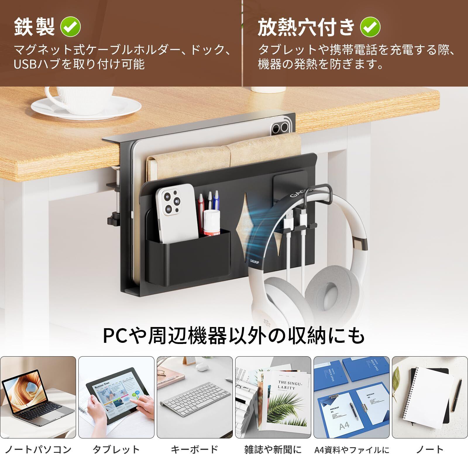 GAGUIUP デスクサイド 収納 ラック 小物入れ デスクサイドホルダー 収納ラック テーブルサイドポケット pcスタンド デスク周り タブレット収納 穴あけ不要 省スペース ブラック