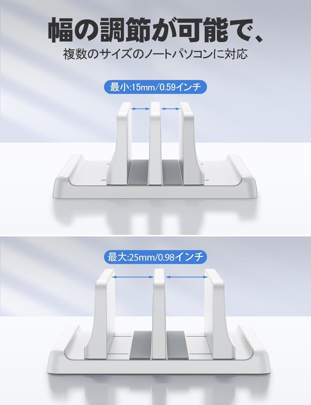 【特価セール】VAYDEER ノートパソコン スタンド PCスタンド 縦置き 2台収納 ホルダー幅調整可能 ABS樹脂製 タブレット/ipad/MacBook Pro Air 縦置き用 -白