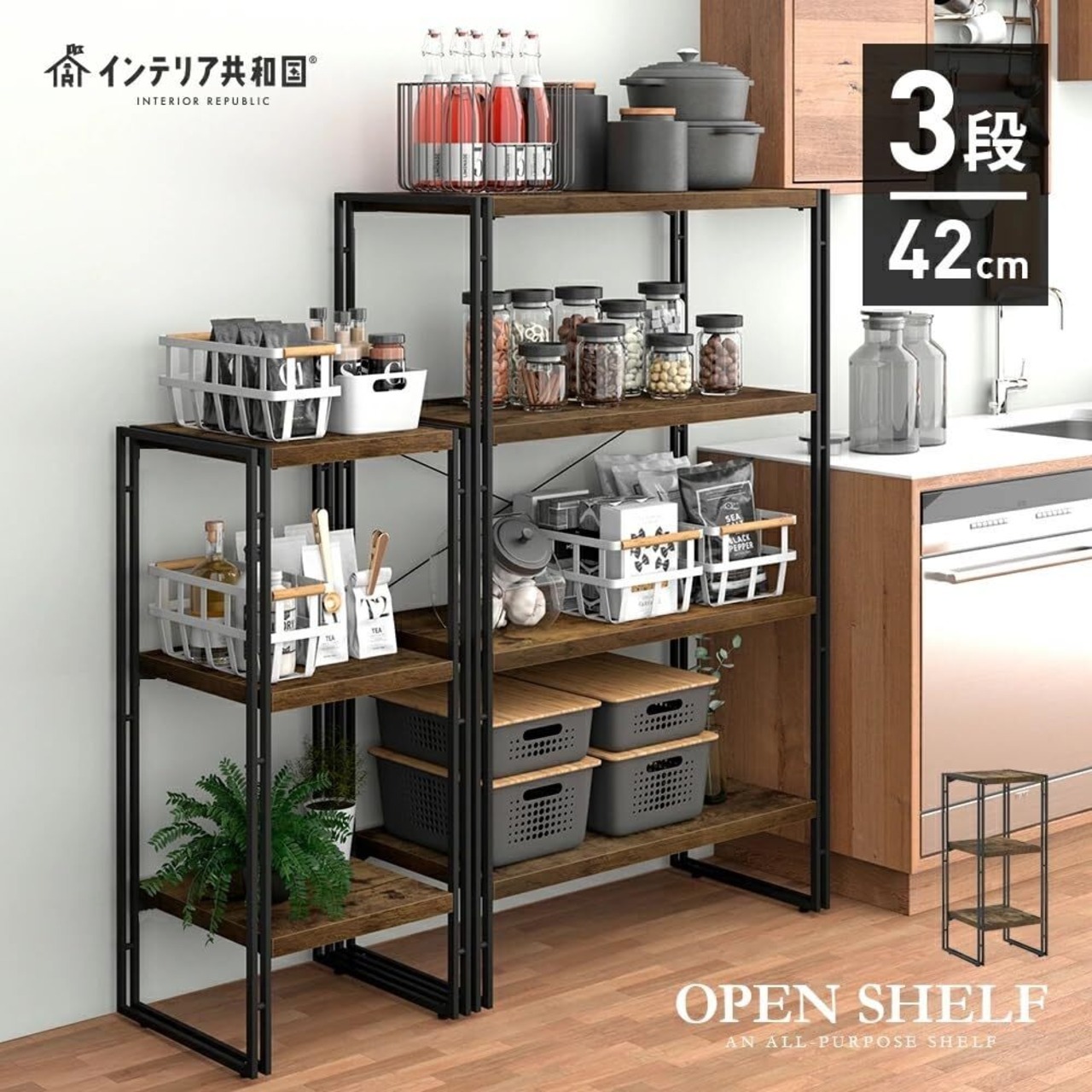 【特価商品】インテリア共和国 オープンシェルフ おしゃれ ラック 本棚 収納ラック 木製 3段( 幅42×奥行30×高さ90cm)