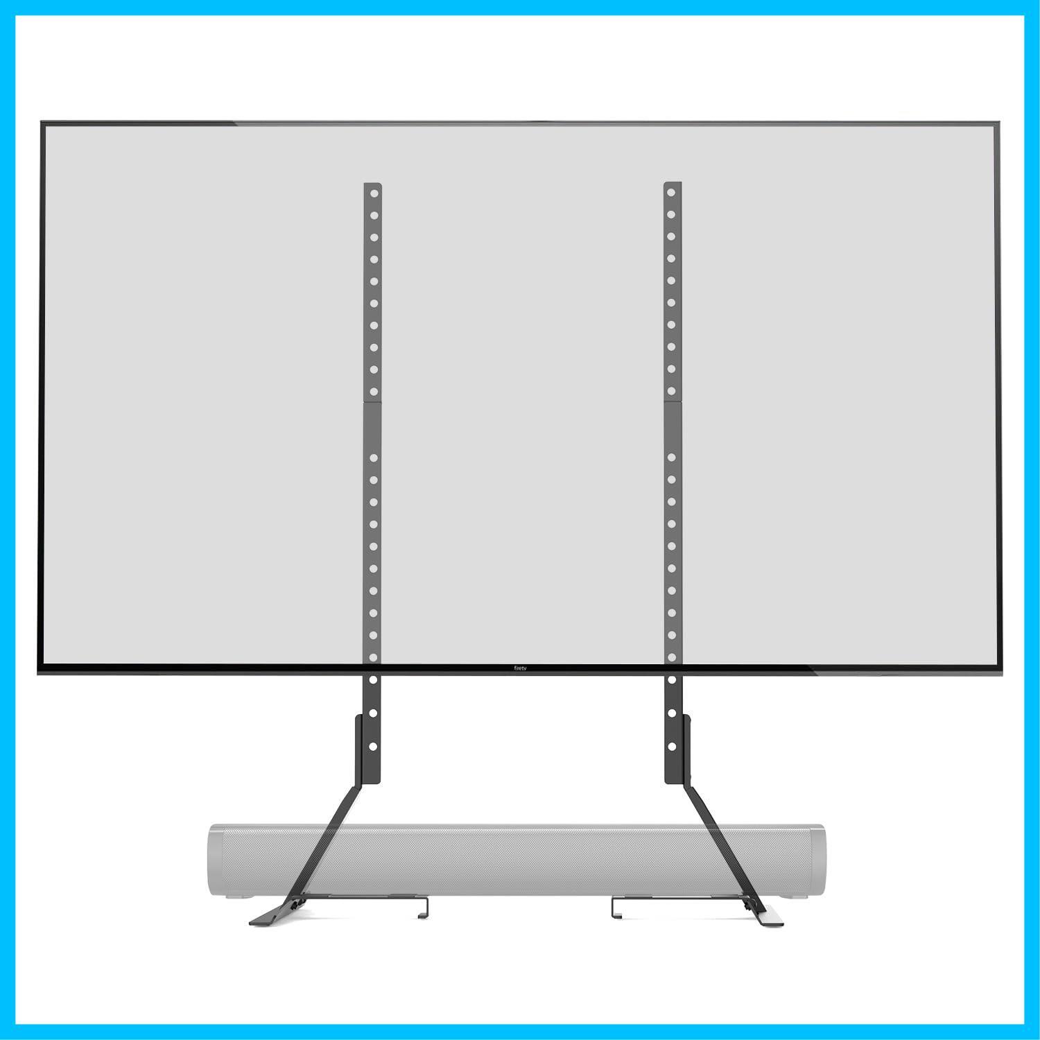 安定性と汎用性を考慮して作られたこのテレビスタンドは、安定性を高める延長脚が特徴で、耐久性のある金属素材の取り外し可能なタブを備えており、スタンドの上にサウンドバーをしっかりと取り付けるのに最適です。サウンドバーを卓上から持ち上げると、デスクスペースがすっきり整理されます。
