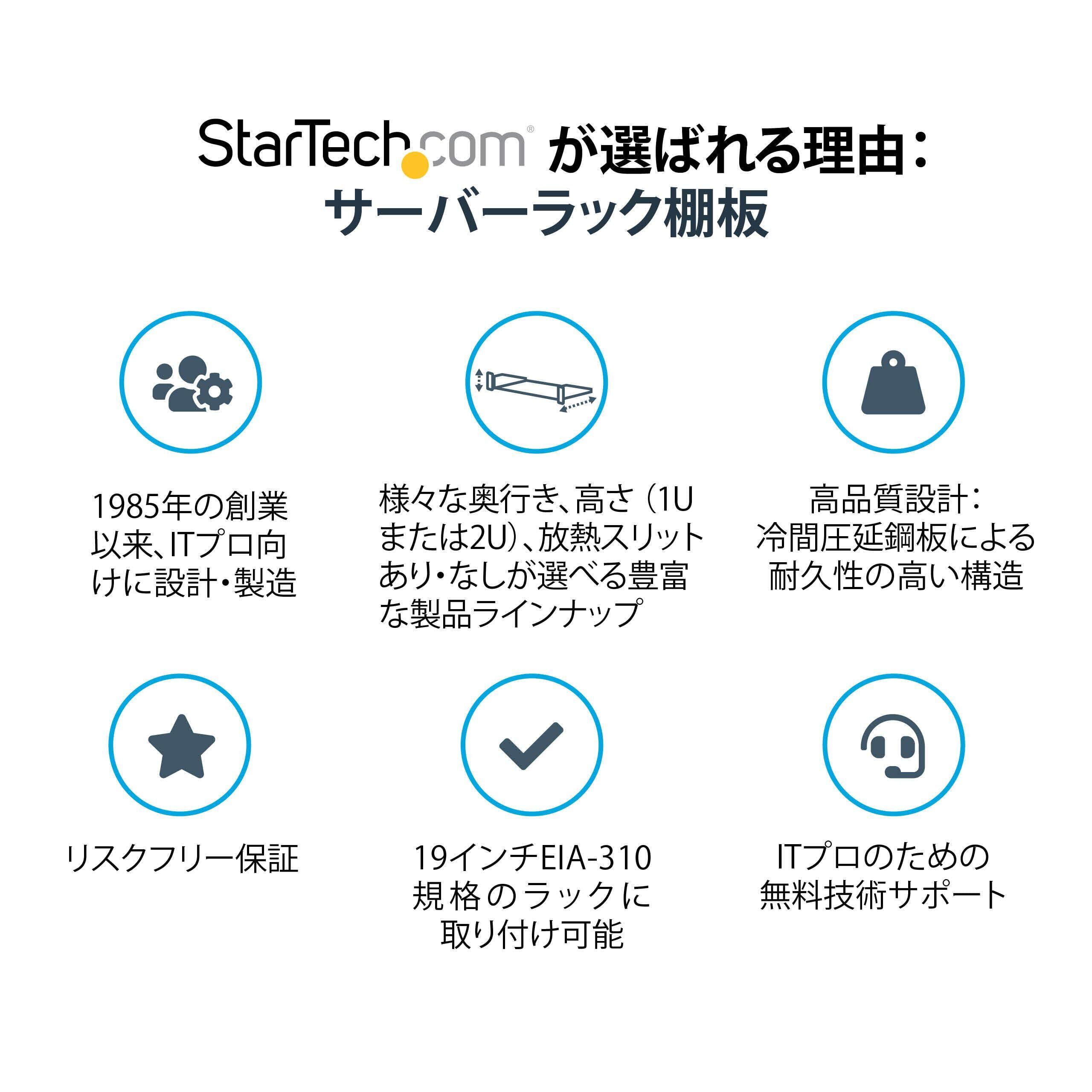 StarTech.com 2U サーバーラック棚板/19インチ装置ラック&キャビネット用放熱スリット付きカンチレバートレイ/高耐久性スチール/耐荷重23kg/奥行41cm ブラック CABSHELFV