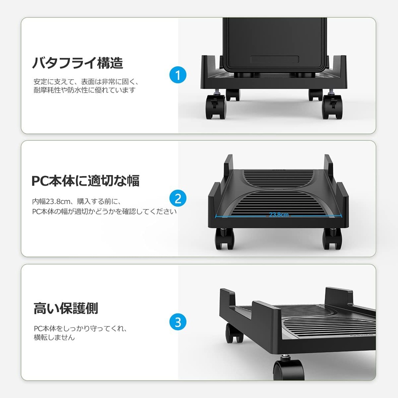ORICO CPUスタンド キャスター付き台車 PC収納ボックス PCスタンド デスクトップ用PCワゴン PCカート 収納カート 足元収納 側板ある ほこり対策 耐荷重20kgまで CPB-3