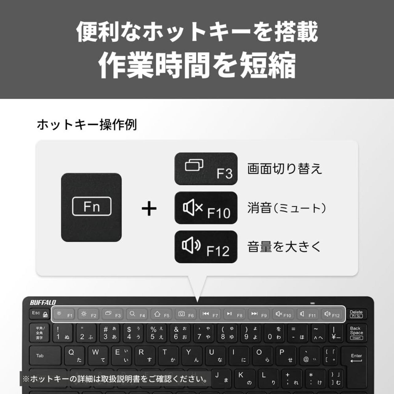 バッファロー ワイヤレス 無線 ミニ キーボード 薄型 持ち運び USB レシーバー付属 日本語 ブラック BSKBW355BK