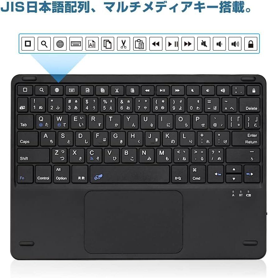 【JIS日本語配列&タッチパッド搭載】 〈ご注意:iOSのiPad/iPhone用キーボードですが、よくご確認頂いた後ご購入ください。〉キーボードはJIS日本語配列レイアウトを採用し、音量調整やメディアプレーヤーの操作などのマルチメディアキーを搭載しています。Bluetooth 5.1 キーボードはタッチパッド搭載、パンタグラフキータイプ、快適に操作することが可能になります。タッチパッドは必要ない時、ロックされることができます。