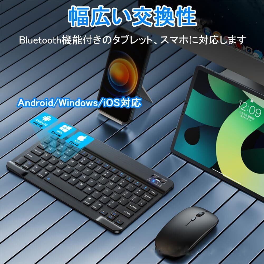 Bluetoothキーボードマウス iPad用 タブレットキーボードマウスセット iPhone、スマホ対応 type-c充電式 英語配列 薄型 軽量 コンパクト アイパッド air pro mini keyboard(黒)