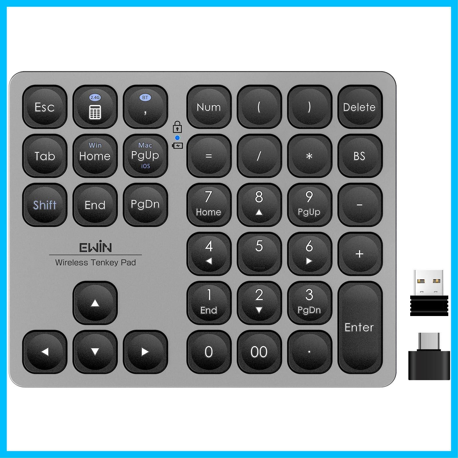 Ewin テンキー Bluetooth5.2 / 2.4G接続 2台接続 Mac対応テンキー ワイヤレス 数字キーボード Bluetoothキーボード 超薄軽量 numlock連動 Type-C充電 37キー 日本語対応 iOS iPadOS Mac Windows Androidに対応