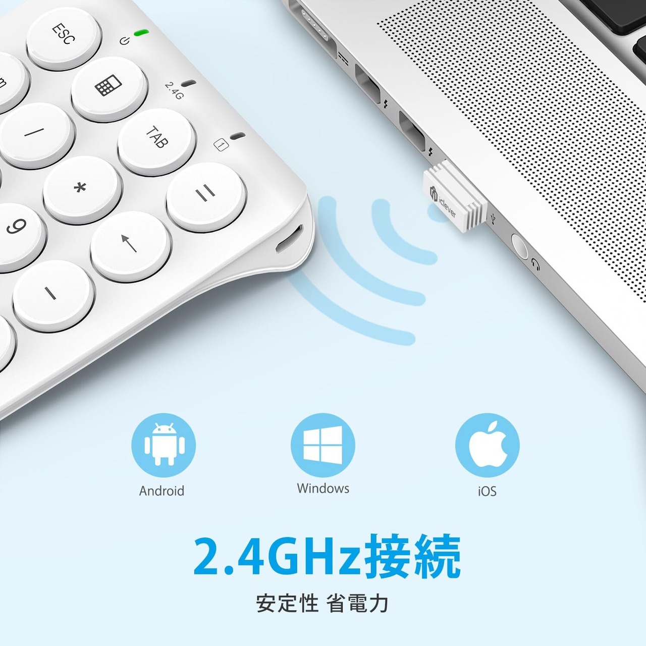 iClever テンキー ワイヤレス 2.4G 数字 キーボード パンタグラフ式 Type-C充電 超薄型 Tabキー付き 持ち運び便利 無線 ナンバーパッド 片手デバイス 高耐久 PC ノートブック用 Windows対応 IC-KP09 (ホワイト)