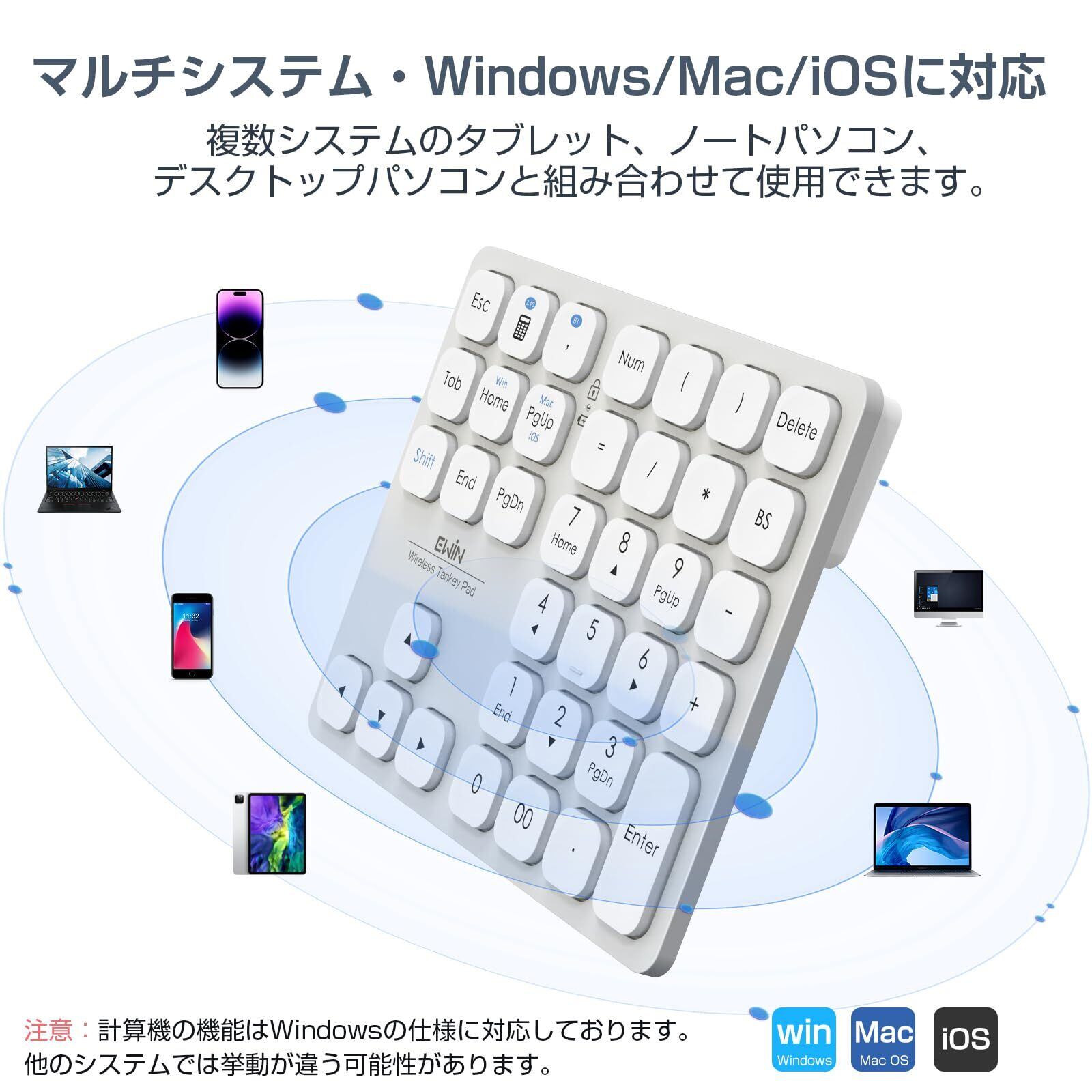 Ewin テンキー キーボード Bluetooth/2.4G接続 ワイヤレス 数字キーボード Bluetoothキーボード 2台まで接続 超薄型 numlock連動 Type-C充電 37キー 日本語対応 iOS iPadOS Mac Windows Androidに対応 ライトグレー