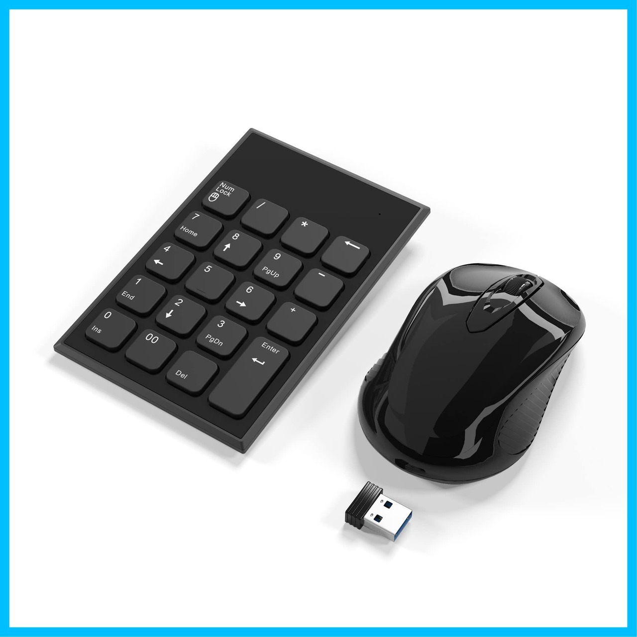 【人気商品】ワイヤレステンキーとマウスセット、2.4G 無線 19キー ワイヤレス テンキーボード とマウスセットはラップトップ、デスクトップPC、ノートブックに対応可能です。ただ一つのUSBポートを使って、数字入力キーボードもマウスもに接続できます