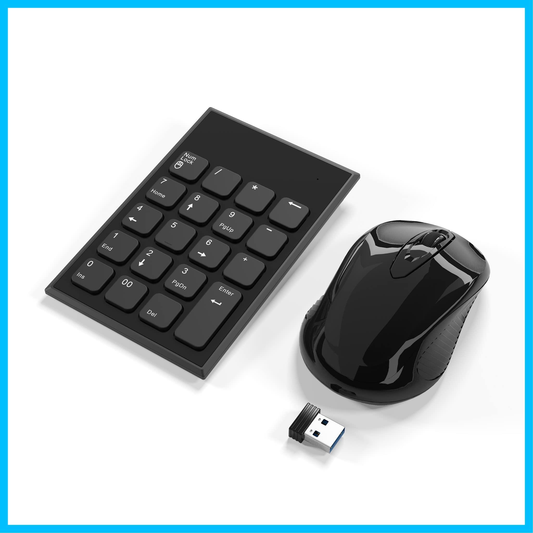ワイヤレステンキーとマウスセット、2.4G 無線 19キー ワイヤレス テンキーボード とマウスセットはラップトップ、デスクトップPC、ノートブックに対応可能です。ただ一つのUSBポートを使って、数字入力キーボードもマウスもに接続できます