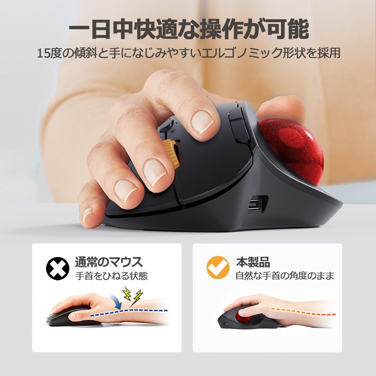 ProtoArc トラックボールマウス Bluetooth/2.4GHz両対応 3台同時接続 無線 マウス トラックボール 静音 親指 Type-C充電式 大容量バッテリー内蔵 5段階DPI調節可能 進む/戻るボタン搭載 Windows/Mac/iOS/Android対応(ワインレッド) 【2024新登場】