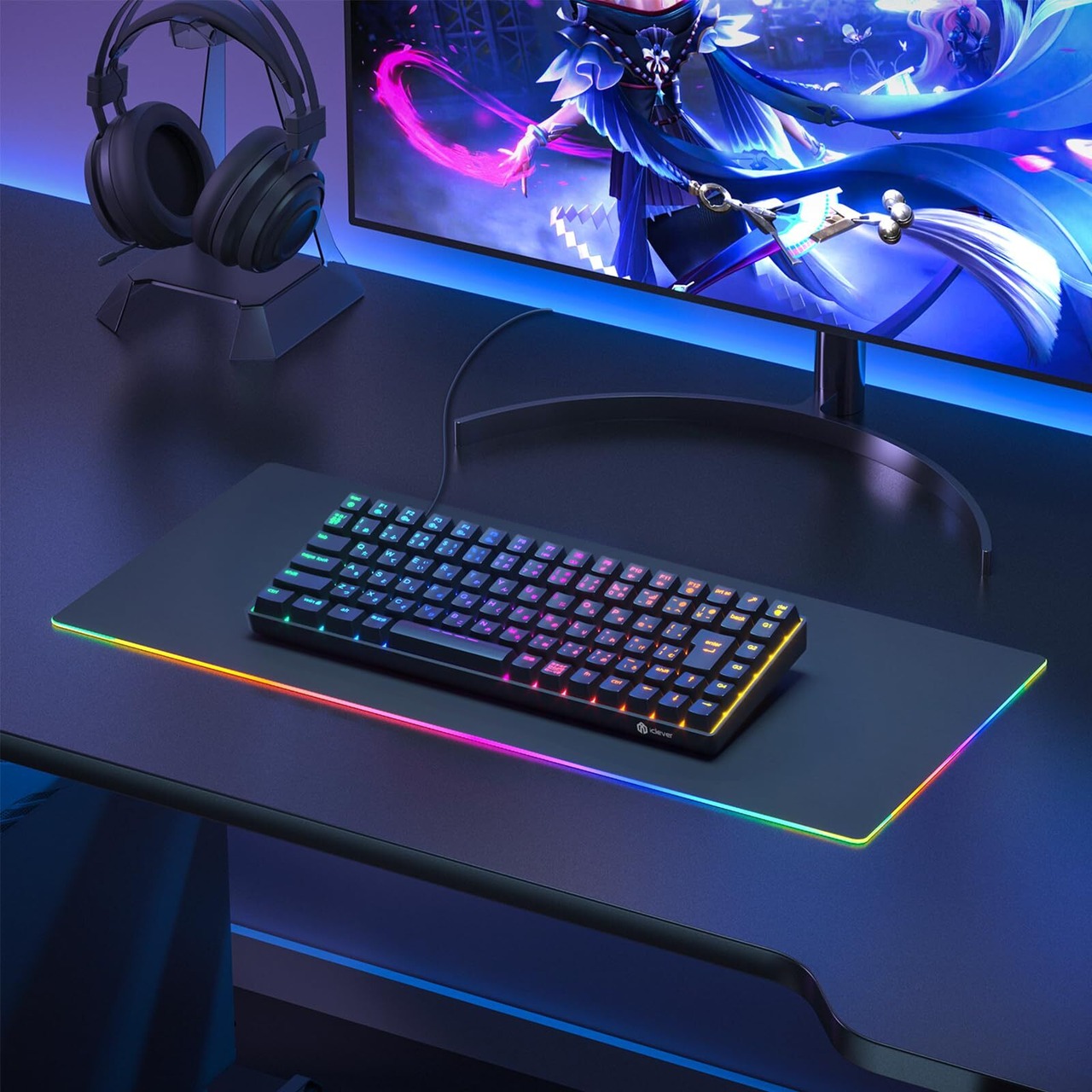 【新着商品】iClever ゲーミングキーボード テンキーレス 赤軸 メカニカル キーボード 日本語配列 有線 75%サイズ 88キー 全キーロールオーバー カスタマイズ RGB 23種類 バックライト 静音 着脱式ケーブル ゲーム用 パソコンキーボード Windows対応 G05 (ブラック)
