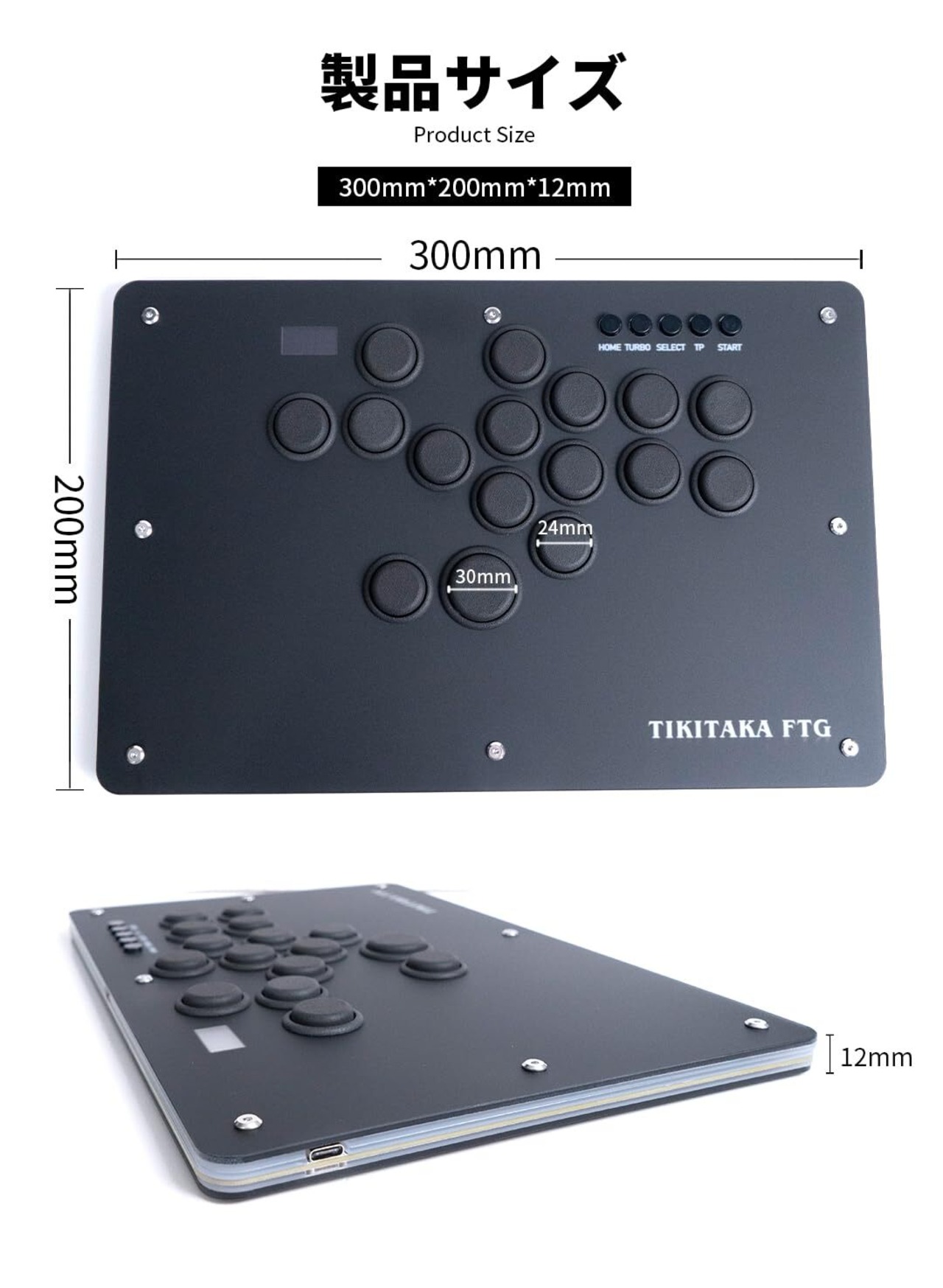 TIKITAKA FTG T16B Tシリーズ クラシックボタンレイアウト ナイロンボタン レバーレスコントローラー 12mm超薄 SF6 アーケード格闘ゲーム用ゲームコントローラー For PS4/PS3/PC/Switch 製品に日本語の取扱説明書が付属している (T16B)