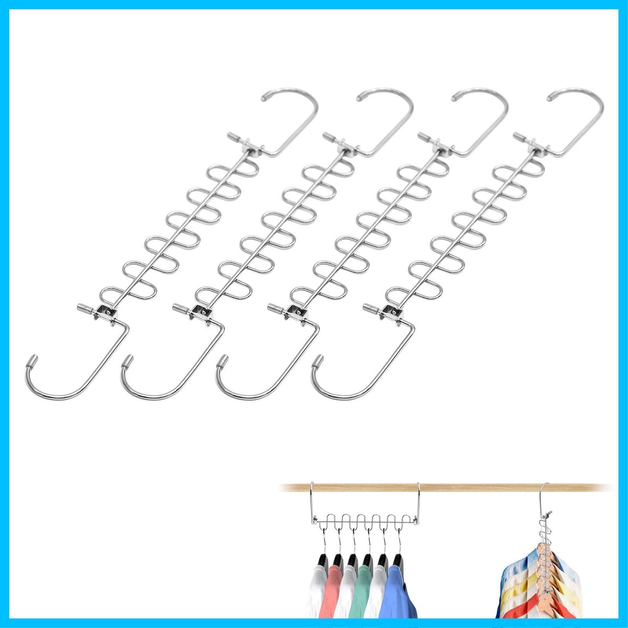 【数量限定】KR KITCHENRAKU フックコートハンガー 省スペースハンガー ステンレス 縦横両用 頑丈 ハンガーフック ハンガー 収納力アップ 洗濯物干し マジックハンガー (12連4本組)