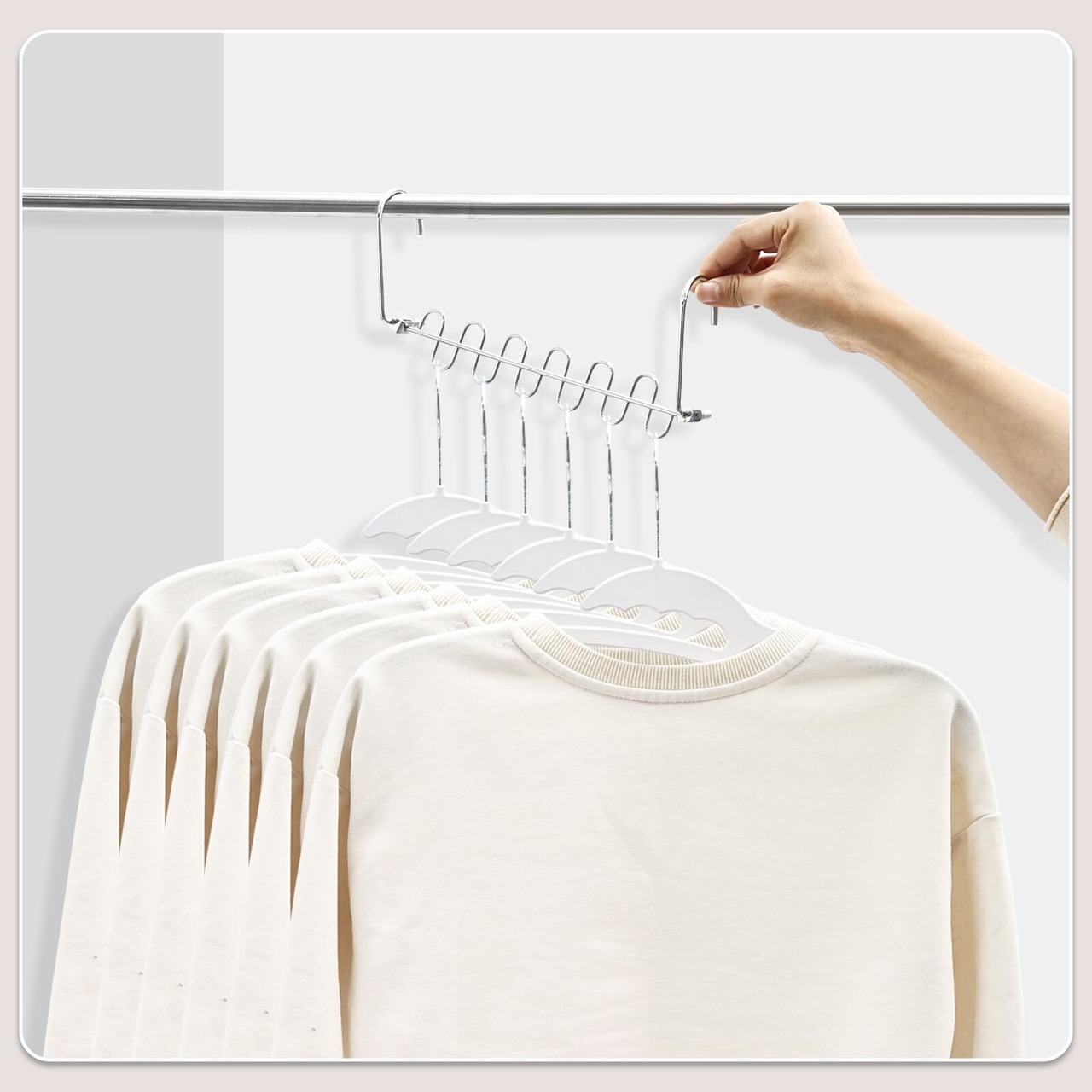 【省スペースクローズラック】スタイリッシュで清潔なワードローブを持ちたいなら、この省スペースクローズラックは必需品です。コンパクト設計での12連マジックハンガー、同時にハンガー1本につき6~12枚の衣類を縦にも横にも収納できます、収納の効率を大幅アップ。クローゼットの空間を最大化に利用されます。ハンガーを重ねて掛けて空間を広げて、特により多くのスペースない家は最適で超便利です。