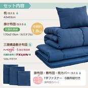 【洗える布団セット】敷き布団以外はすべて洗えます。ご家庭で丸洗い可能なので、いつでも綺麗、清潔。※洗濯機をご使用の場合は、洗濯ネットを必ずご使用ください。