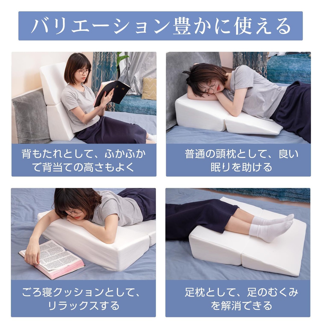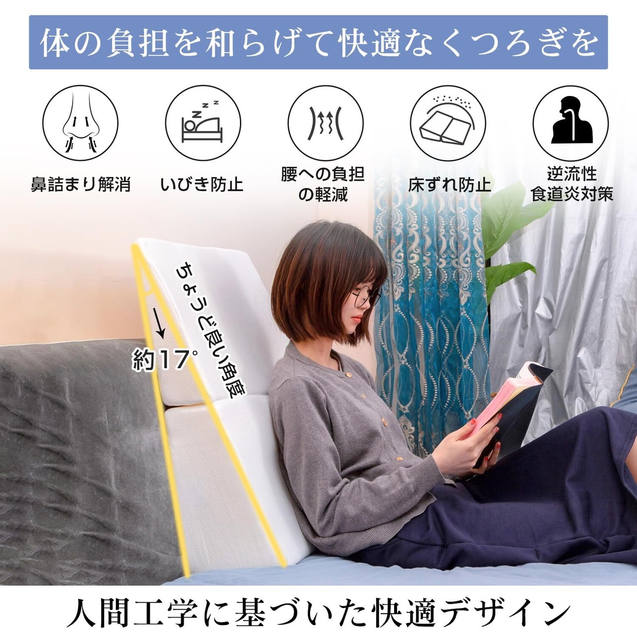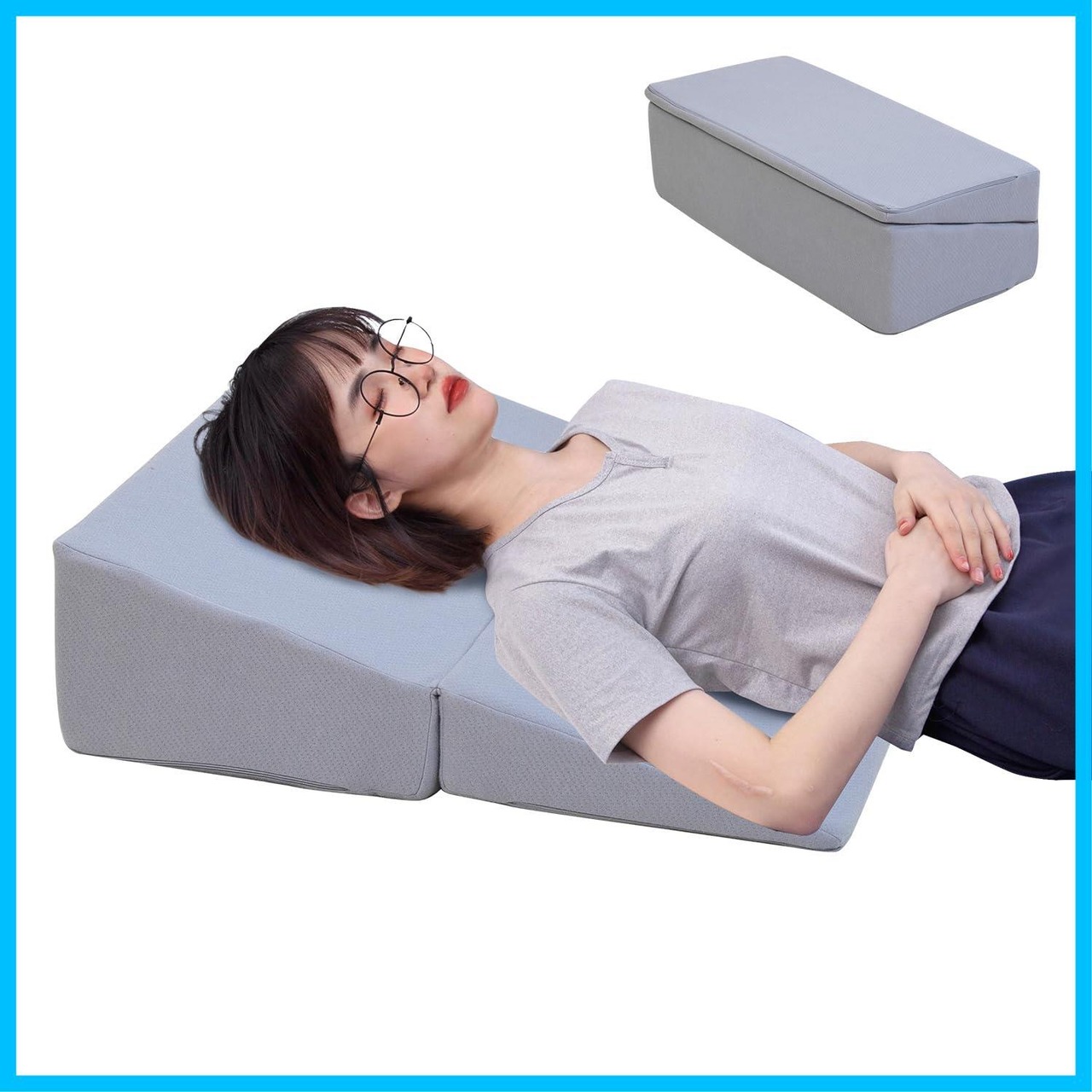 Qucover 三角クッション 逆流性食道炎 枕 三角枕 傾斜枕 ベッド 背もたれ 読書枕 腰枕 テレビ枕 介護用クッション 高反発 洗えるカバー (グレー)