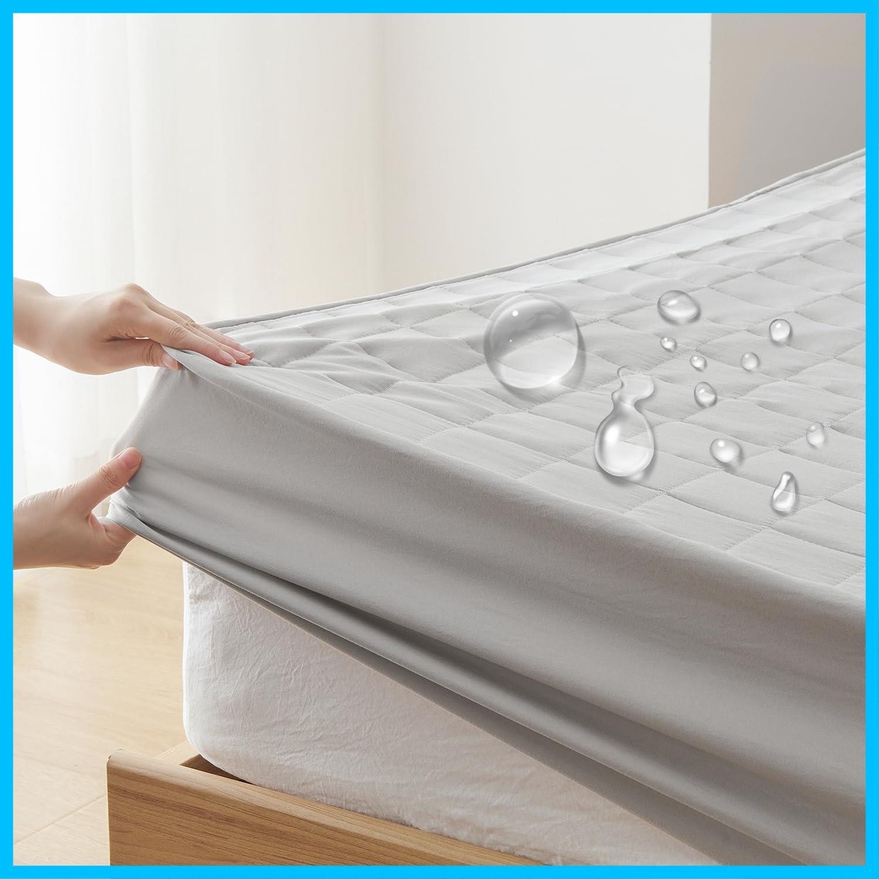 【全周ゴムタイプ】360°ゴム付きなので、被せるだけで簡単に装着することが可能。厚さは30cmまで対応なので、マットレス/敷布団にもしっかり固定でき、寝相が悪くてもズレにくく朝までぐっすり眠れます。