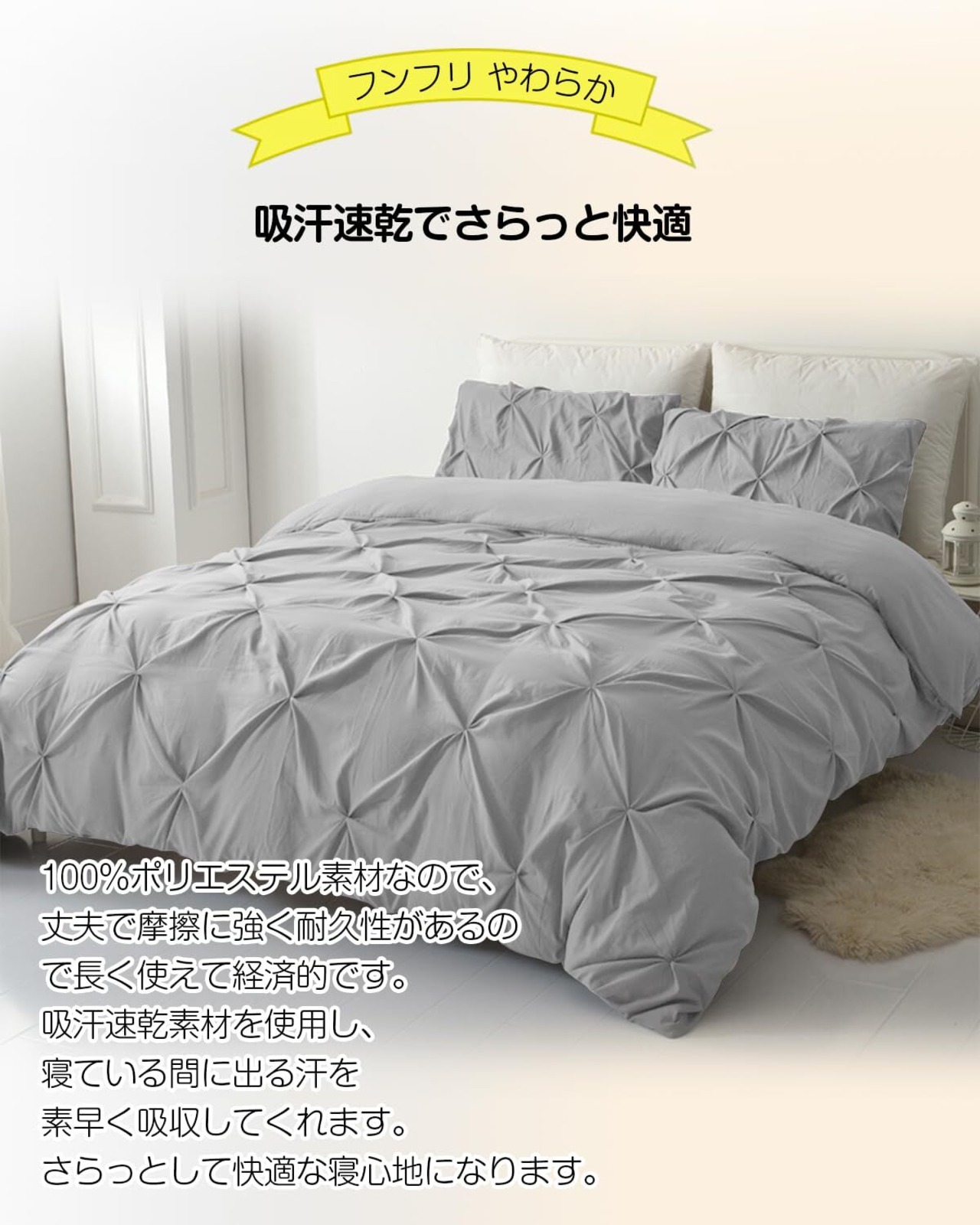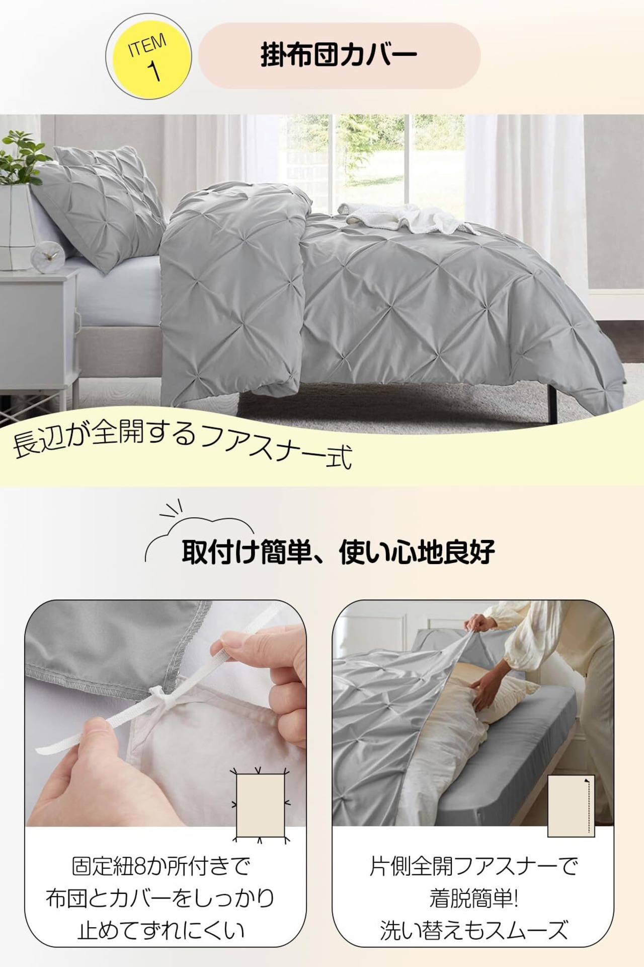 【特価セール】AYO(エイワイオー) 寝具カバーセット 布団カバーセット 3点セット ダイヤタック花柄 ベッドカバー 可愛い 洗える 掛け布団カバー ボックスシーツ 枕カバー かわいい 布団かばー 洋式・和式兼用 ピーチスキン加工(シングル・3点セット ライトグレー)