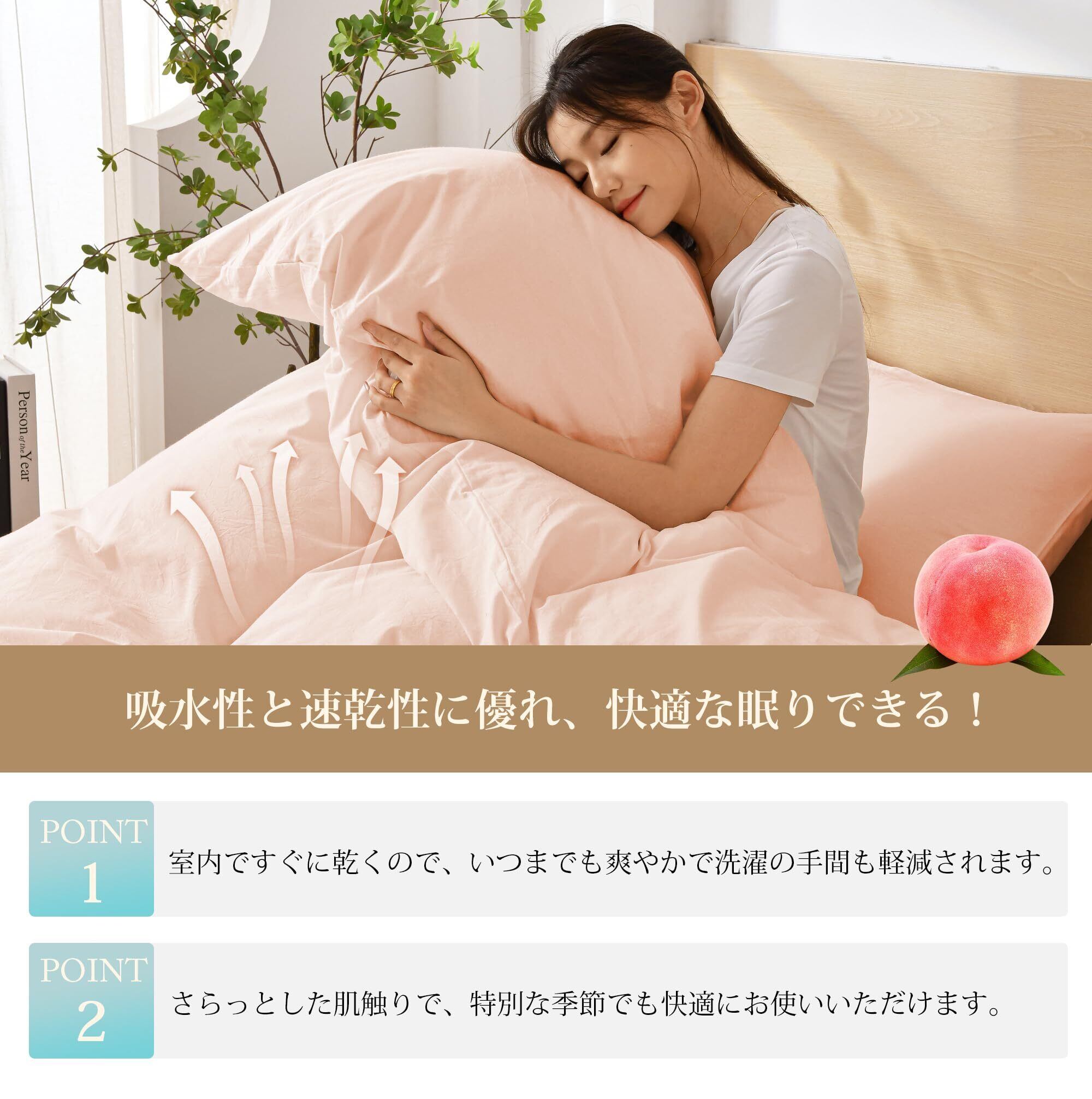 AYO 寝具カバーセット 布団カバーセット 洗いざらし シワ加工 水洗い やわらか (掛け布団カバー ボックスシーツ 枕カバー)吸水速乾 丸洗いOK 肌に優しい 無地 シンプル オールシーズン(シングル・3点セット ピンク)