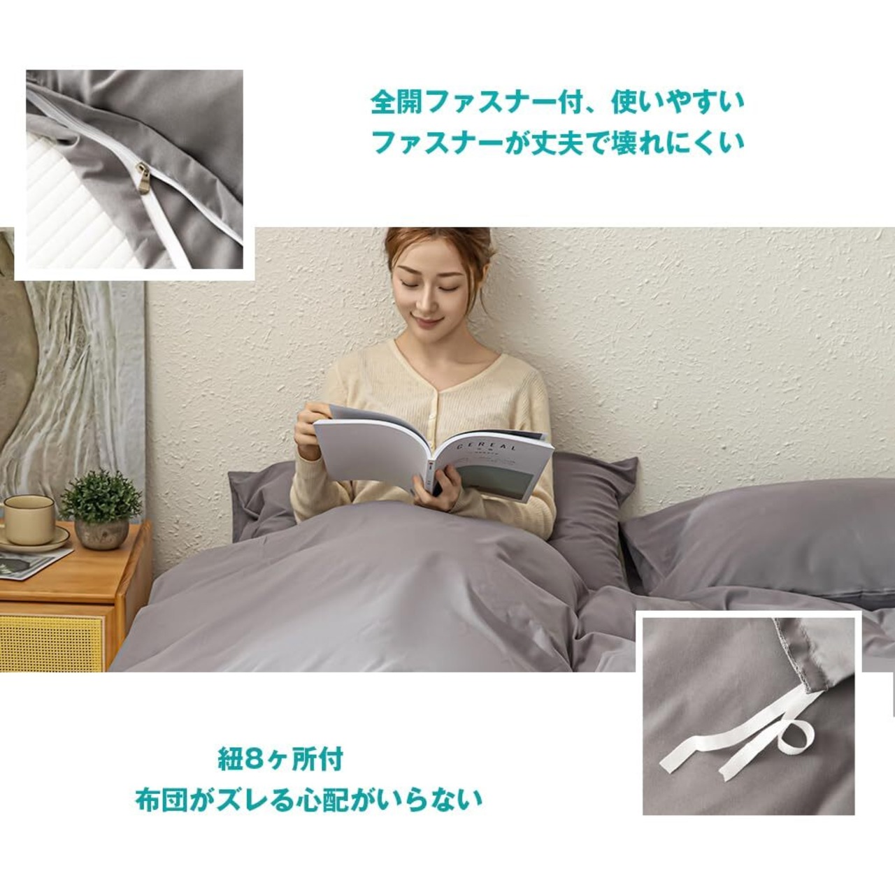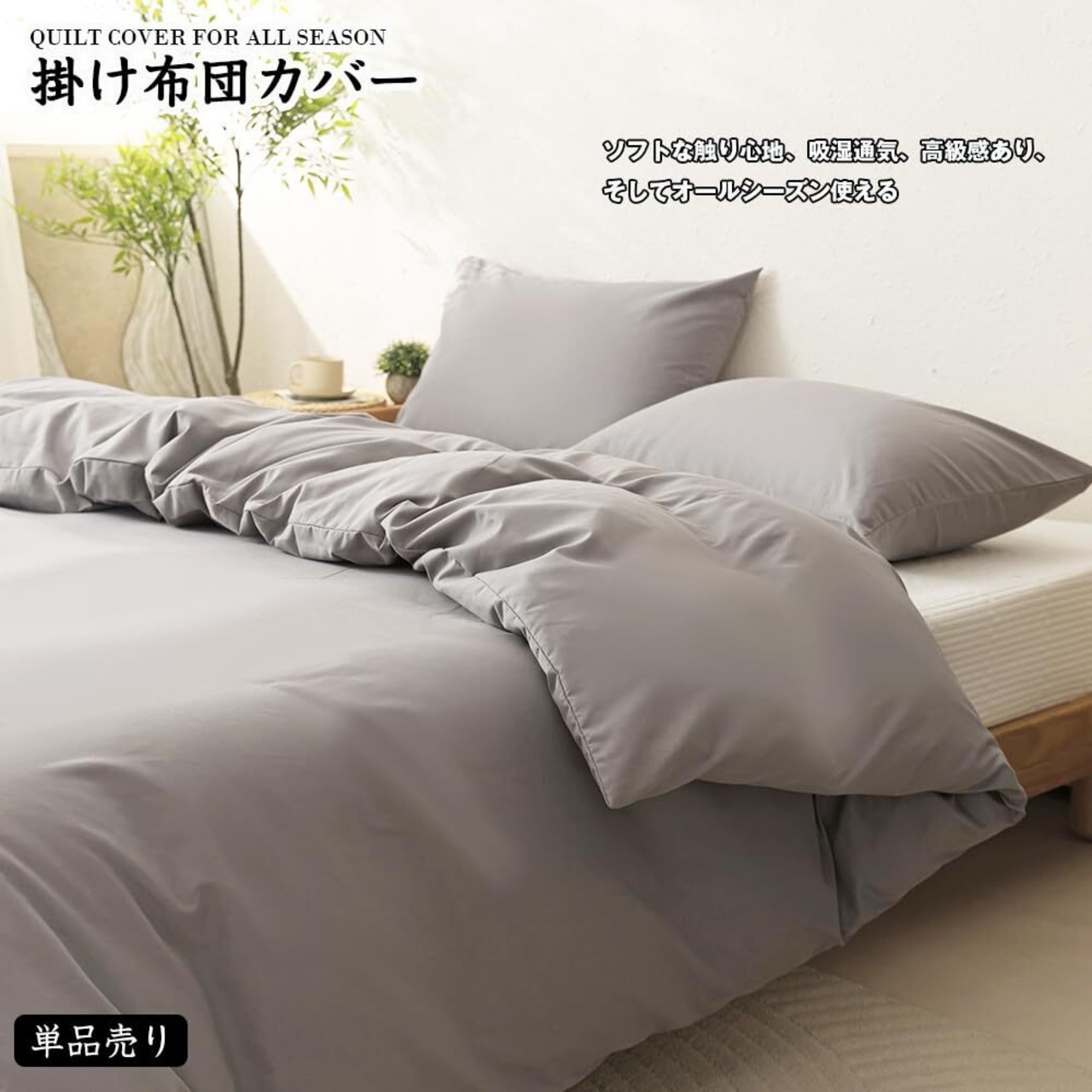 掛け布団カバー クイーン オールシーズン 寝具カバー 柔らかい触り心地 肌にやさしい 全開ファスナー 紐8ヶ所 ズレ防止 ふとんカバー 着脱簡単 毛玉なし 寝汗吸収 通気速乾 防臭防ダニ 210×210cm グレー