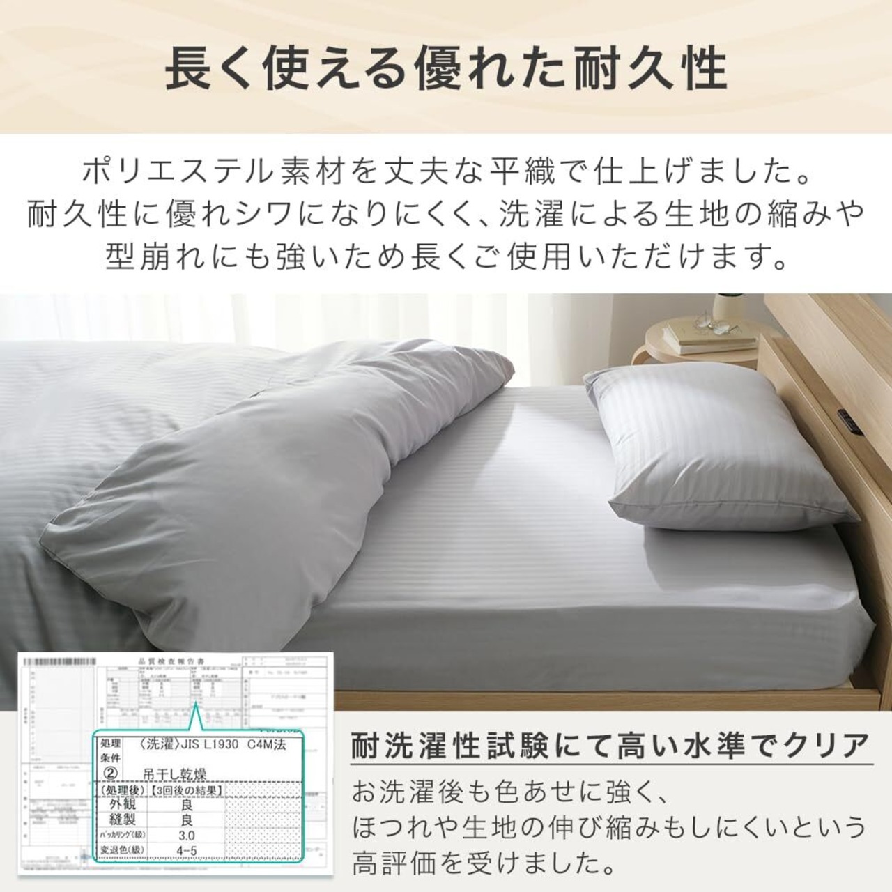 上品さ漂うやわらかな「サテン風生地」。エンボス加工によるストライプ柄を施し、ホテルライクな寝室を演出できます。