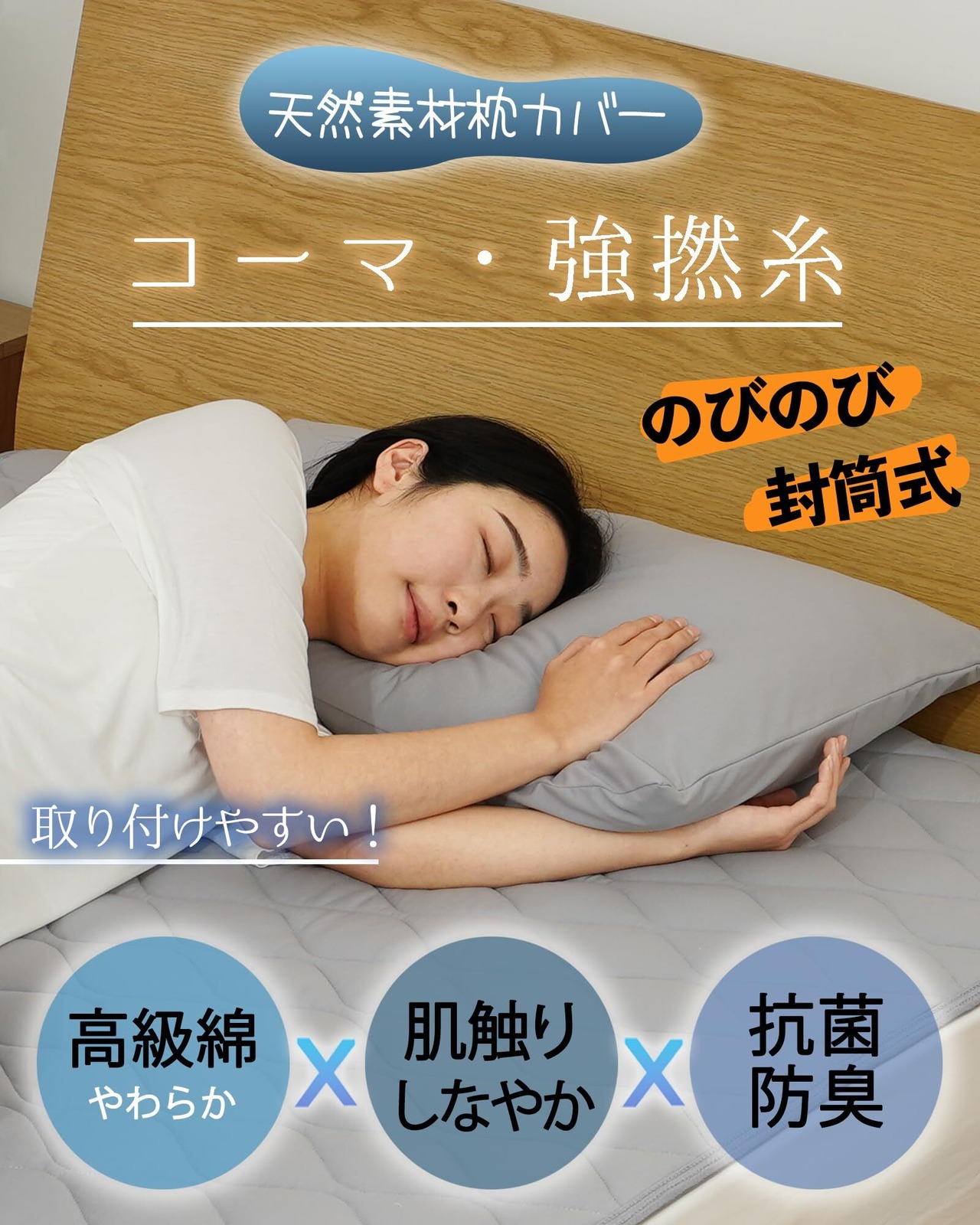 【毛玉できにくい・寝心地最高】枕カバーが丁寧に織り上げることにより、耐久性に優れたしっかりとした生地に仕上がりました。繰り返し洗濯しても、毛玉やほつれができにくいです。 枕カバーの生地は柔らかめで、蒸れにくく、快適に抱いて眠ることができます。毎日、素肌に触れるものだからこそ、抗菌防臭加工を施しています。