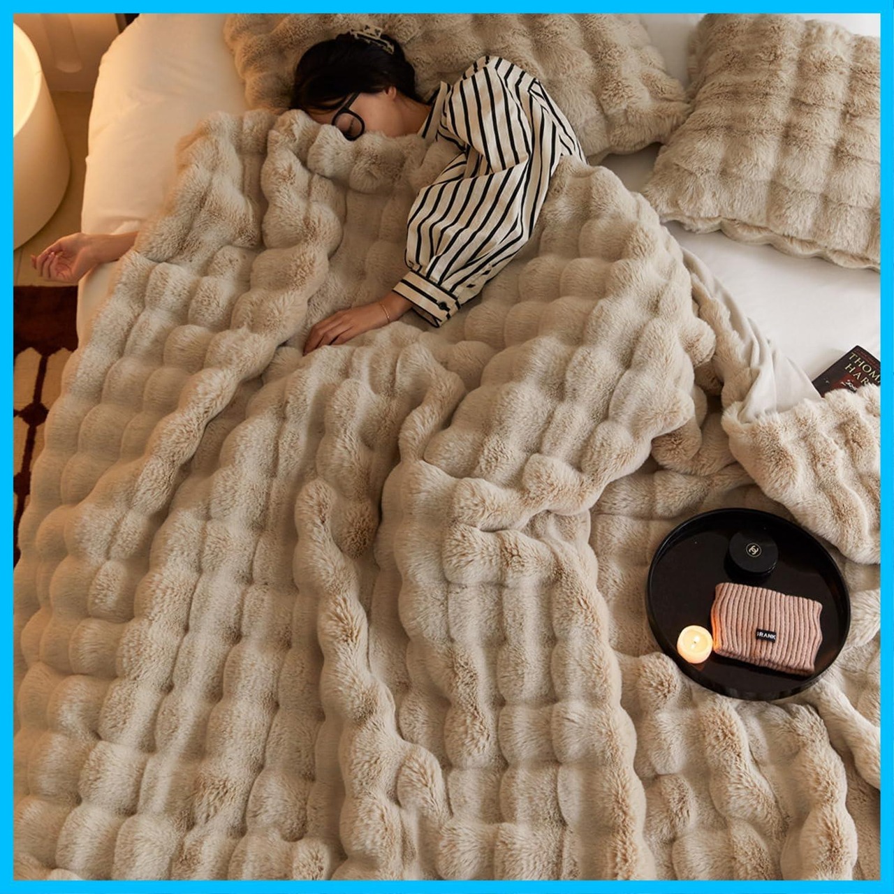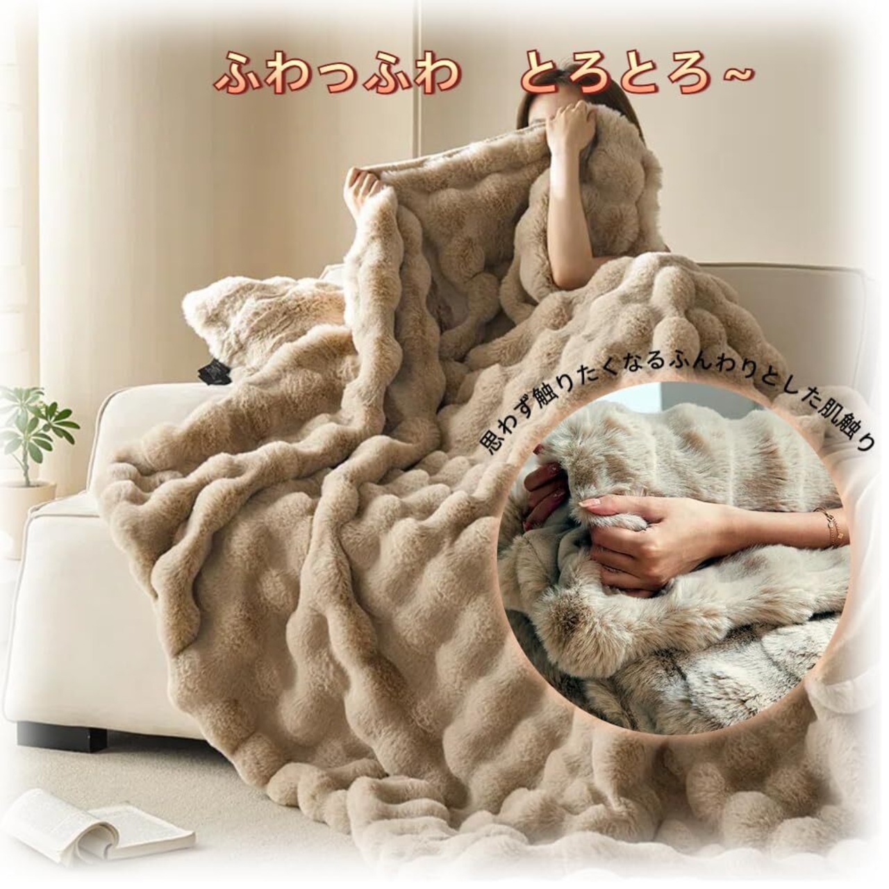 【大人気のふわとろ毛布】TV&SNSで話題になった大人気のふわとろ毛布!ラビットファー調二枚合わせ毛布、両面ふわふわ素材、高級感up、保温性が良い!おしゃれなお部屋を演出し、寒い冬でも暖かくお過ごしいただけるブランケットです。