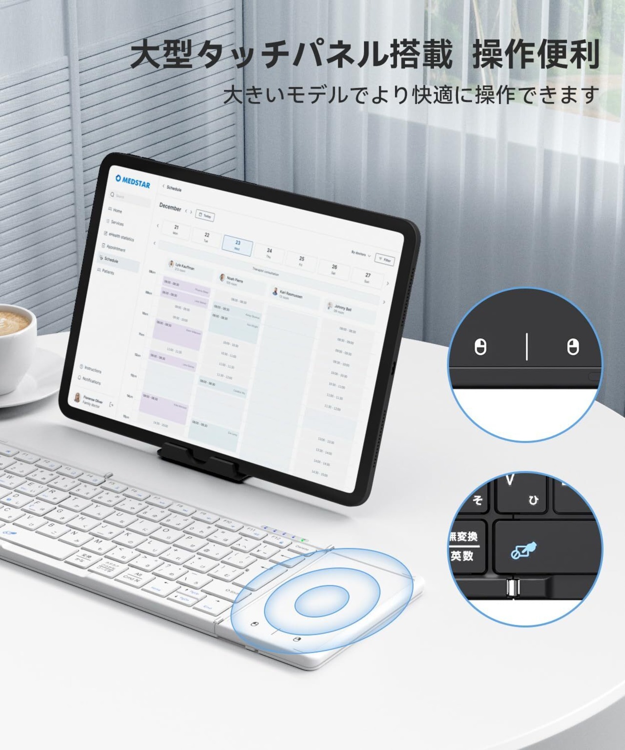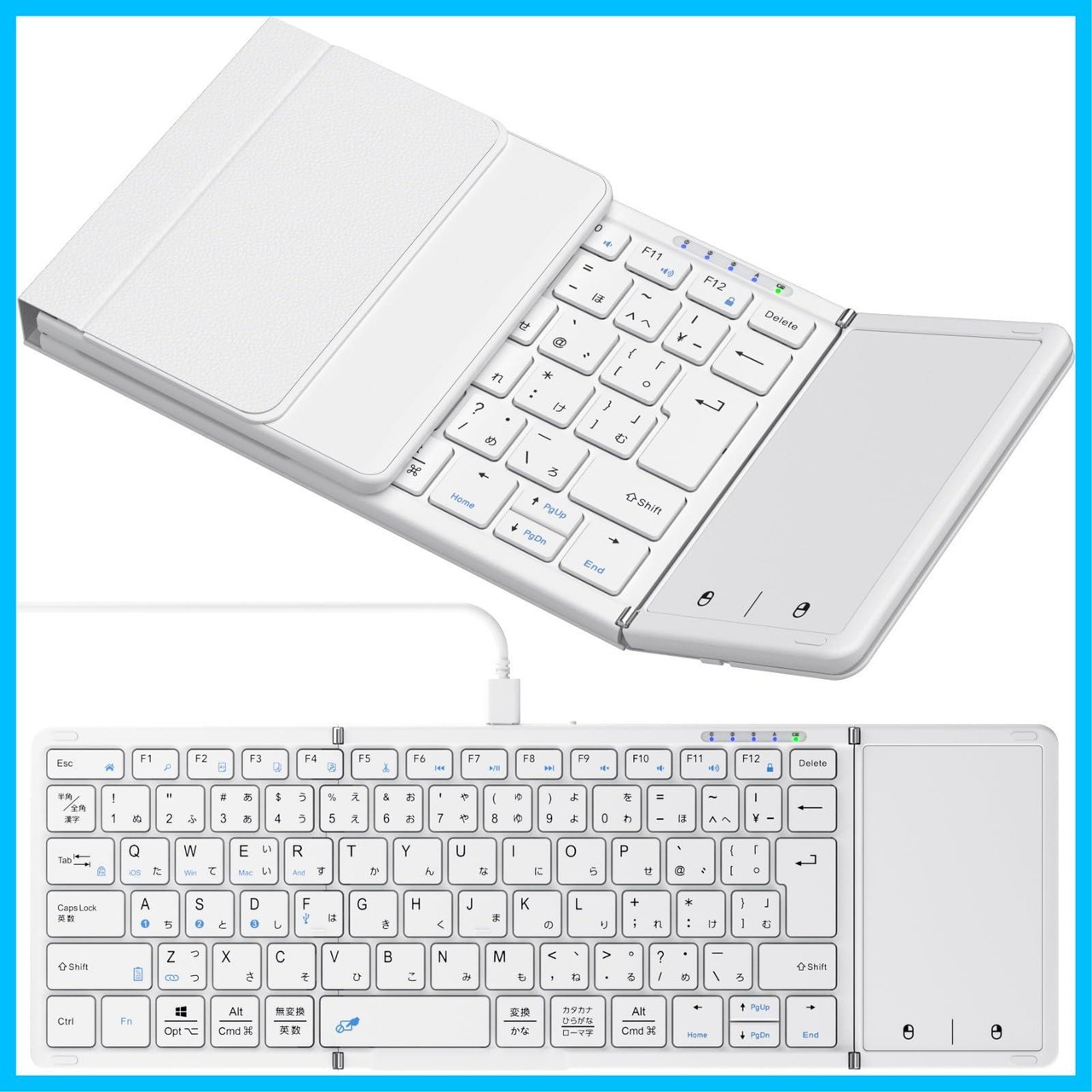 【特価セール】【最新型】Omikamo キーボード Bluetooth 折り畳み式 ipad キーボード ワイヤレス タッチパッド付き 日本語配列 有線&無線両用 左右Shiftキー/L型Enterキー搭載 フルサイズ マルチペアリング Android/Win/Mac/iOS/Google対応 USB充電式 パンダグラフ コンパクト 静音 軽量 薄型 電量確認可(ホワイト)