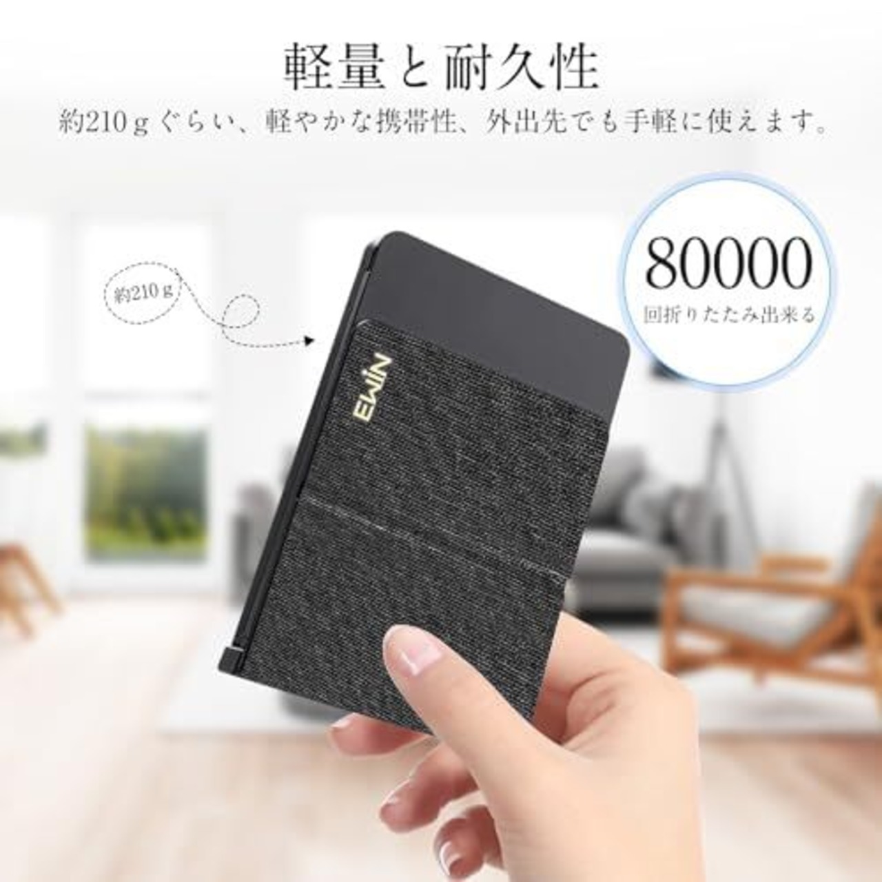 Ewin Bluetooth キーボード 折りたたみ式 超軽量 薄型 レザーカバー 手帳型 ワイヤレスキーボード USB 薄型 IOS/Android/Windows に対応 スマホ用 スタンド付 (折りたたみ式, ブラック)