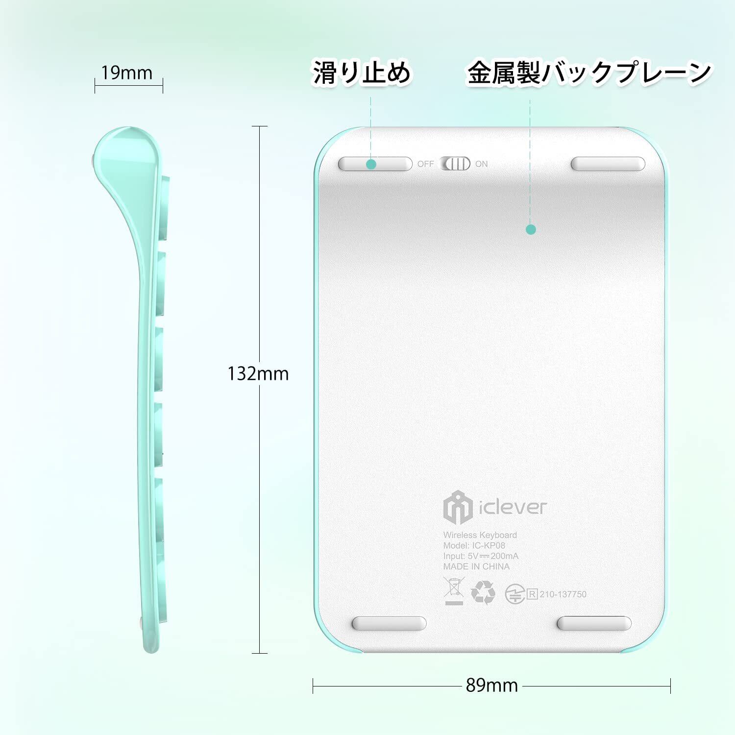 【数量限定】iClever テンキー Bluetooth ワイヤレス 数字 キーボード パンタグラフ式 Type-c充電 超薄型 Tabキー付き ブルートゥース テンキー 無線 ナンバーパッド 左手デバイス 片手デバイス ショートカットキー 高耐久 PC ノートブック用 Windows/iOS/Android など対応 IC-KP08 ミントグリーン