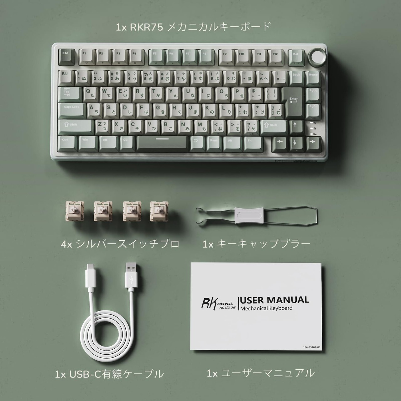 RK ROYAL KLUDGE R75 メカニカルキーボード 有線|日本語配列|ボリュームノブ搭載|ゲーミングキーボード 75%カスタム|ガスケットマウント構造・RGBバックライト・ソフトウェア対応|Cherry Profileプロファイル・PBTキーキャップ・ホットスワップ対応リニアスイッチ・クリーミーな打鍵音