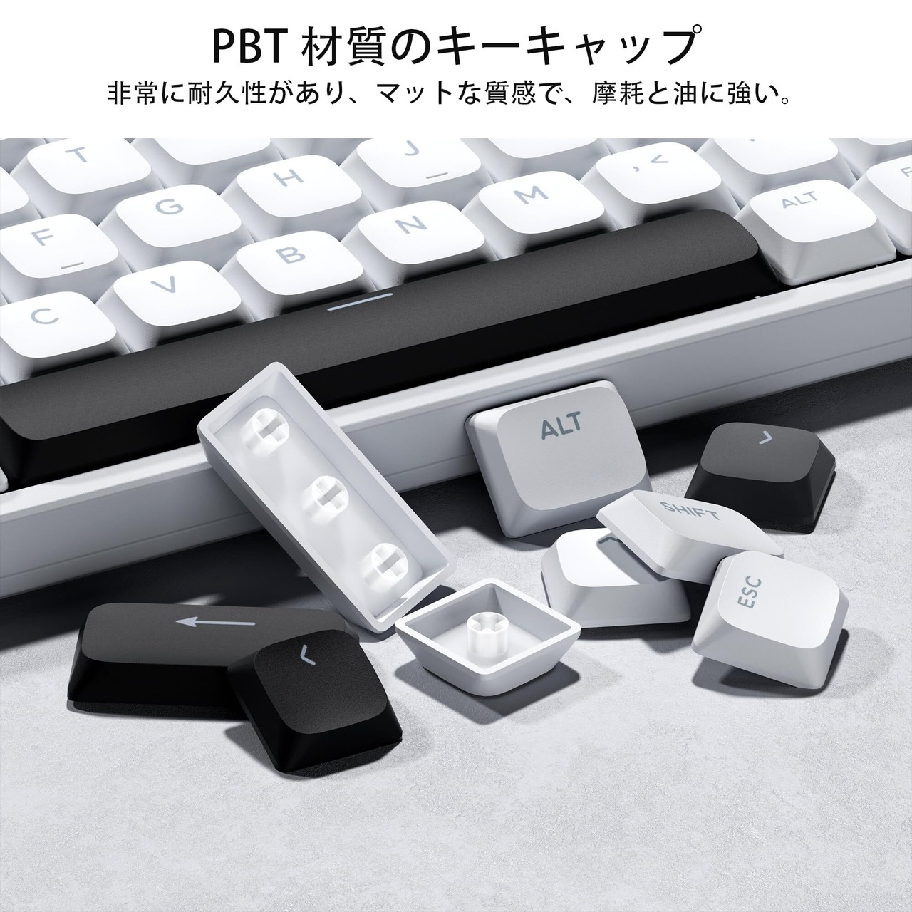 【PBT材料キーキャップ】高品質なPBT材料、PBTまたはポリブテンテレフタレートで作られており、やや霜降りのテクスチャを持つマット仕上がりで、磨耗や油に対して耐性があります。より良い触感とタイピング体験をします