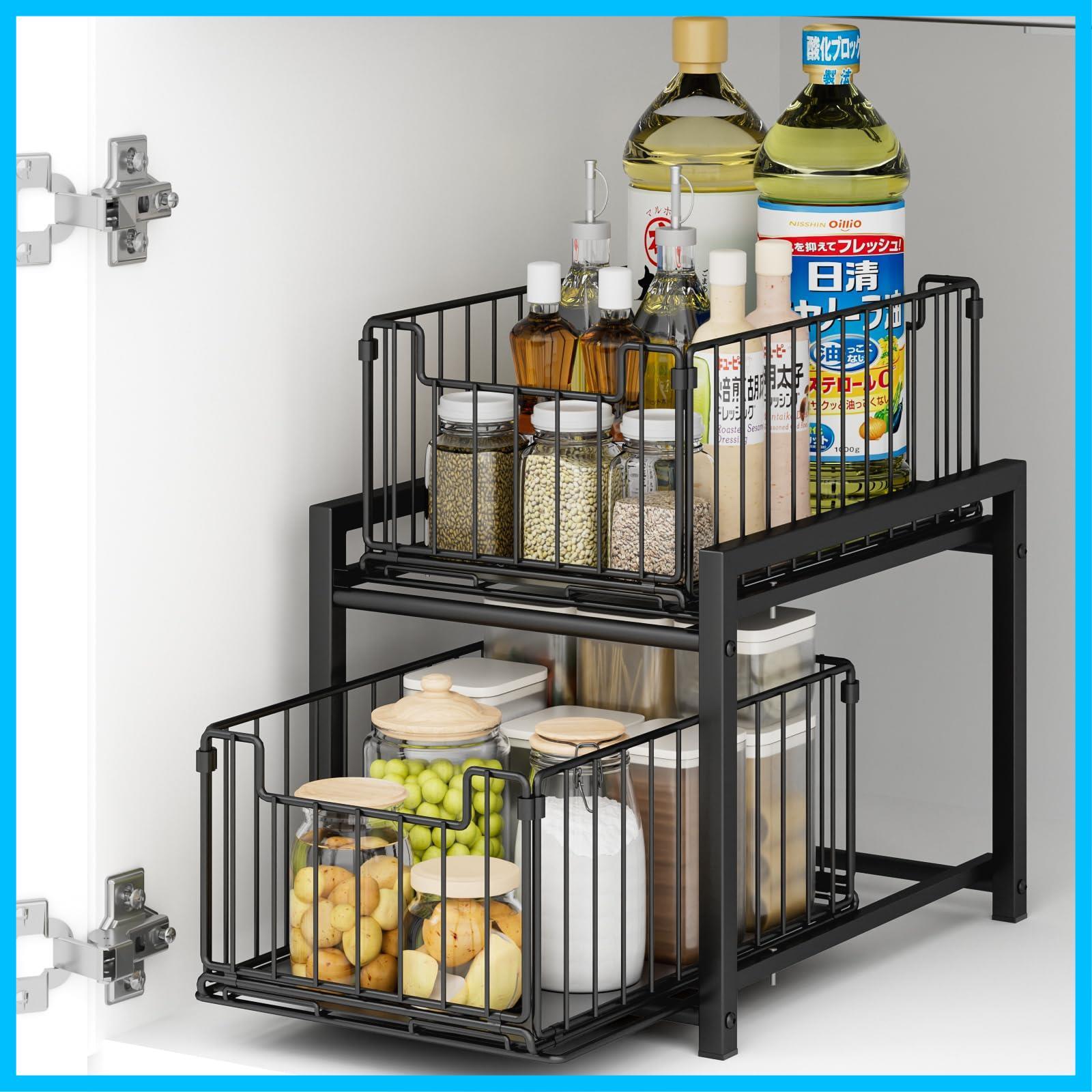 多機能ラック:シンク下はもちろん、調味料置くことも、洗面台下を置くことも、デスクの雑物や化粧品などは収納できます。奥のものが取り出しやすく、しまいやすいスライド式、スムーズに引き出せる、いろいろな場所に大活躍です。