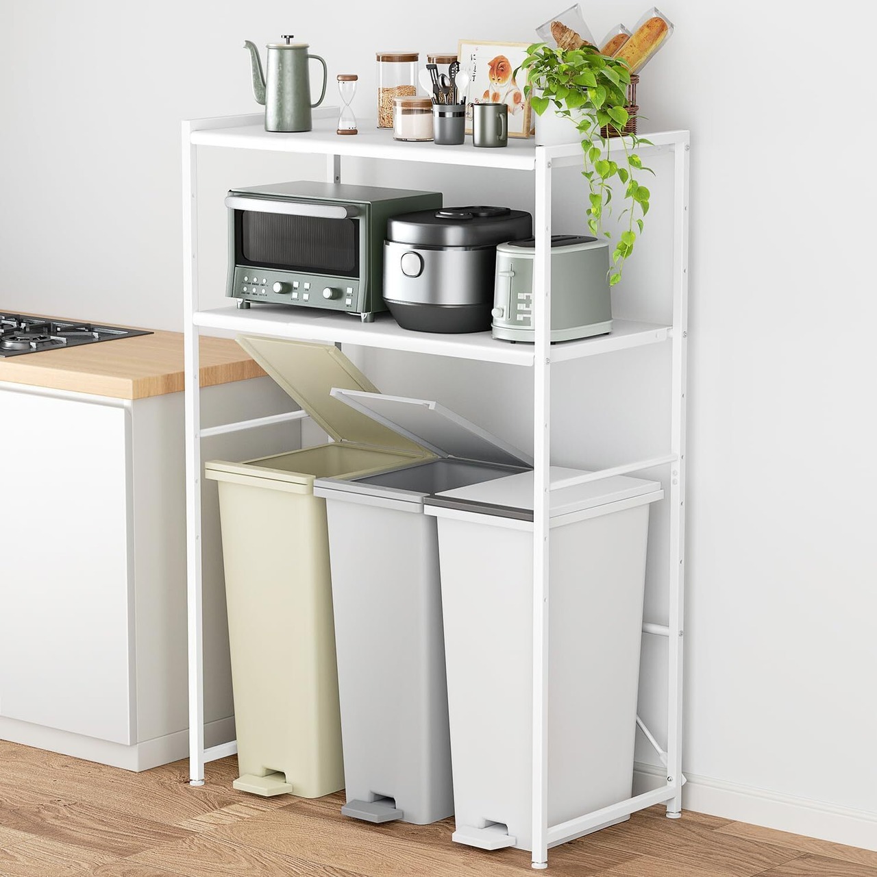 【人気商品】【幅伸縮可・上下調整可】ゴミ箱上ラック TKUIN 電子レンジラック レンジ台 幅60~80cm 高さ8段階調整 トースター置き台 多機能 キッチンラック キッチンボード 収納棚 収納ラック レンジボード スチール スリム 冷蔵庫上ラック おしゃれ 北欧 棚 収納 (White)