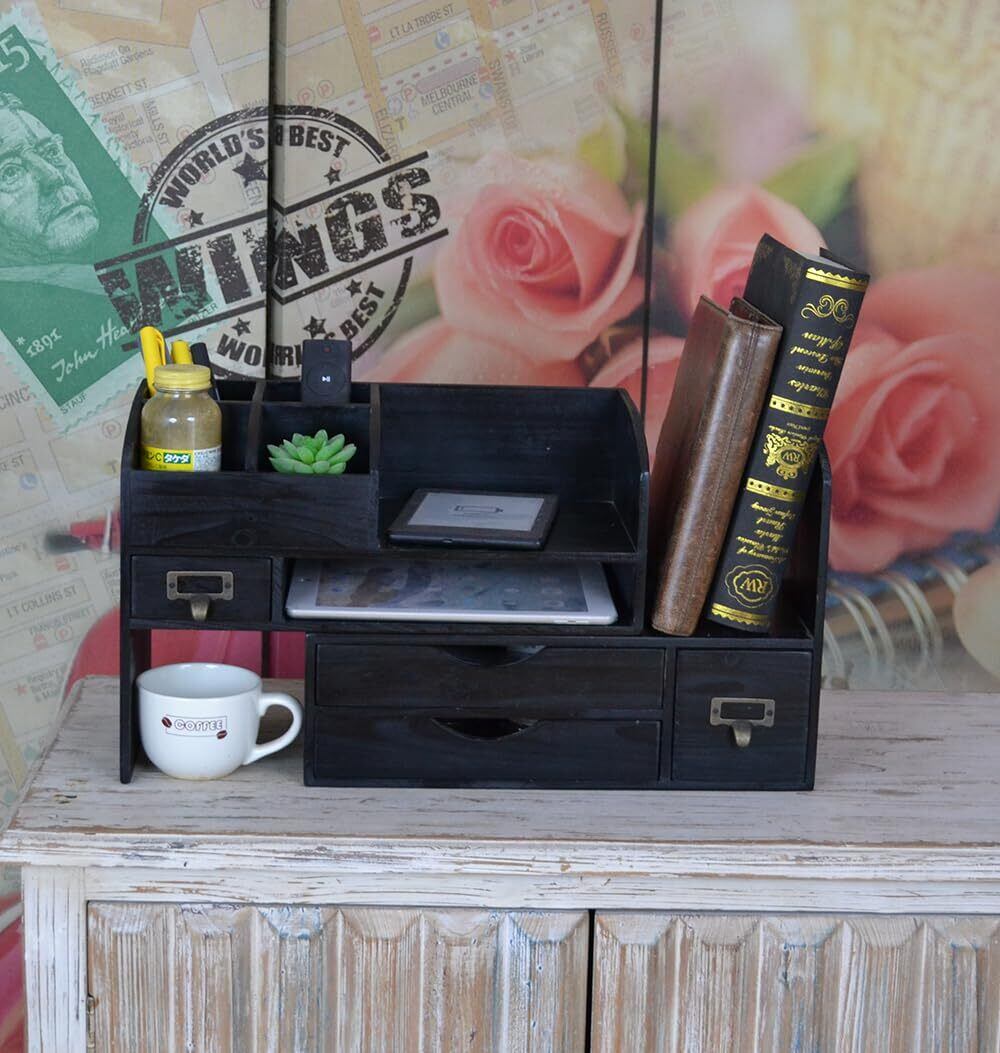 仕様:幅38センチ奥行き18センンチ高さ25.5センチ–レターやリーガルサイズのノートブックや紙、特大の封筒、その他多くの家庭用またはオフィス用デスク用品を収納するのに十分なスペースがあります。この木製デスクオーガナイザーで、机の上に置いても場所をとりません。