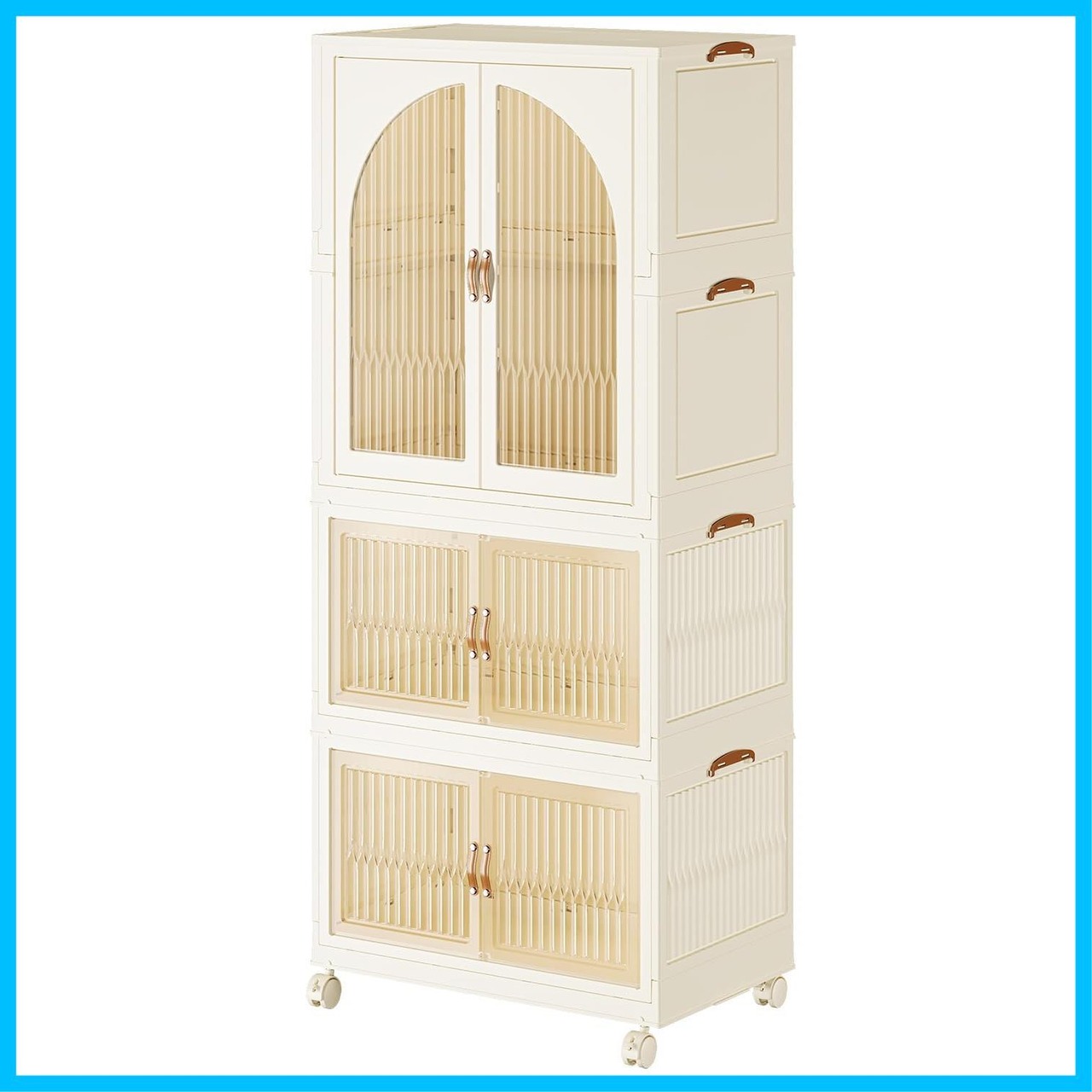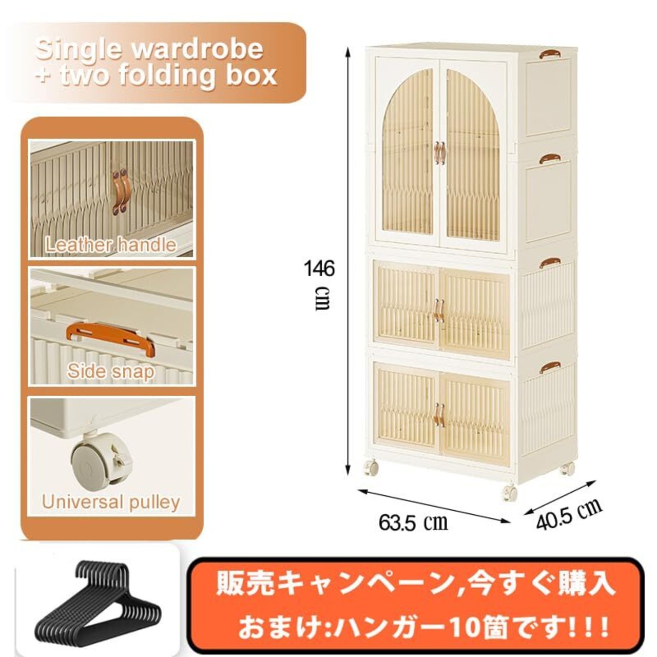 【特価商品】YOSTORYA ワードローブ 折りたたみ クローゼット+ 収納ボックス インストール-不要 プラスチック ワードローブ (10個 ハンガー フリー キット付き) ロッカー 収納 キャビネット ホワイト ブラウン 幅63.5×奥行40.5×高さ146cm