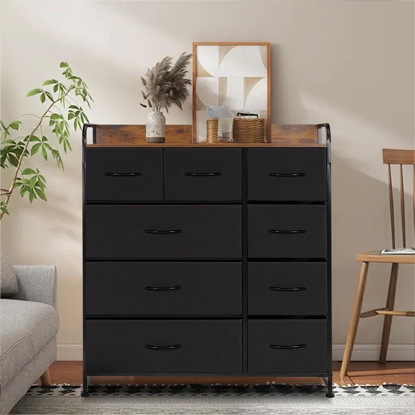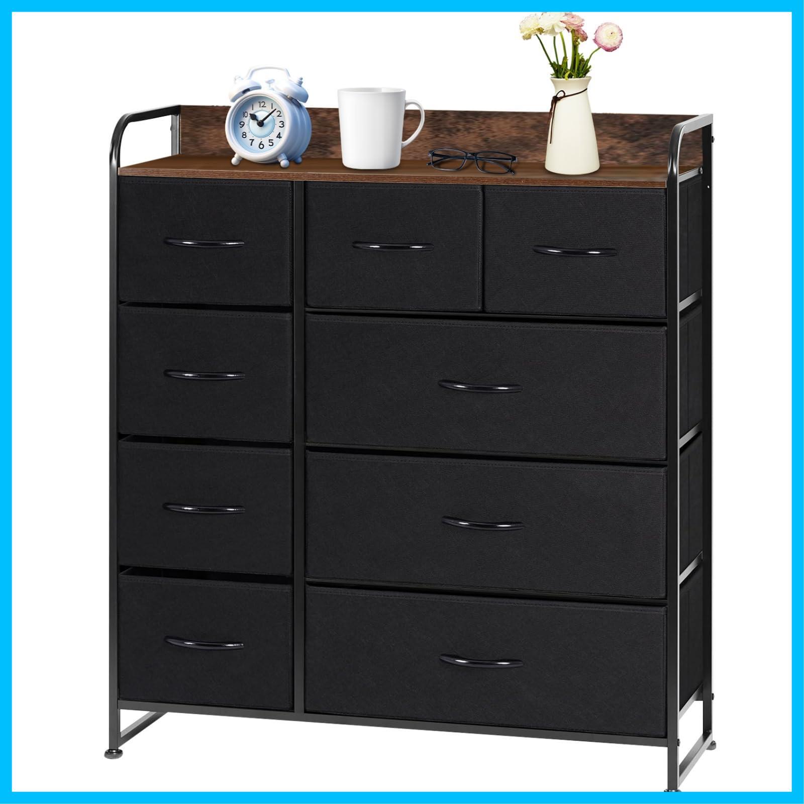 【人気商品】EdoErgo タンス 収納 チェスト 布製 引き出し 洋服収納 リビング収納 大容量 衣類収納 洋服タンス 衣装棚 箪笥 木製天板付き 簡単組立 多機能 転倒防止 4段9杯 AG-CTG01 (4段9杯 黑+黑)