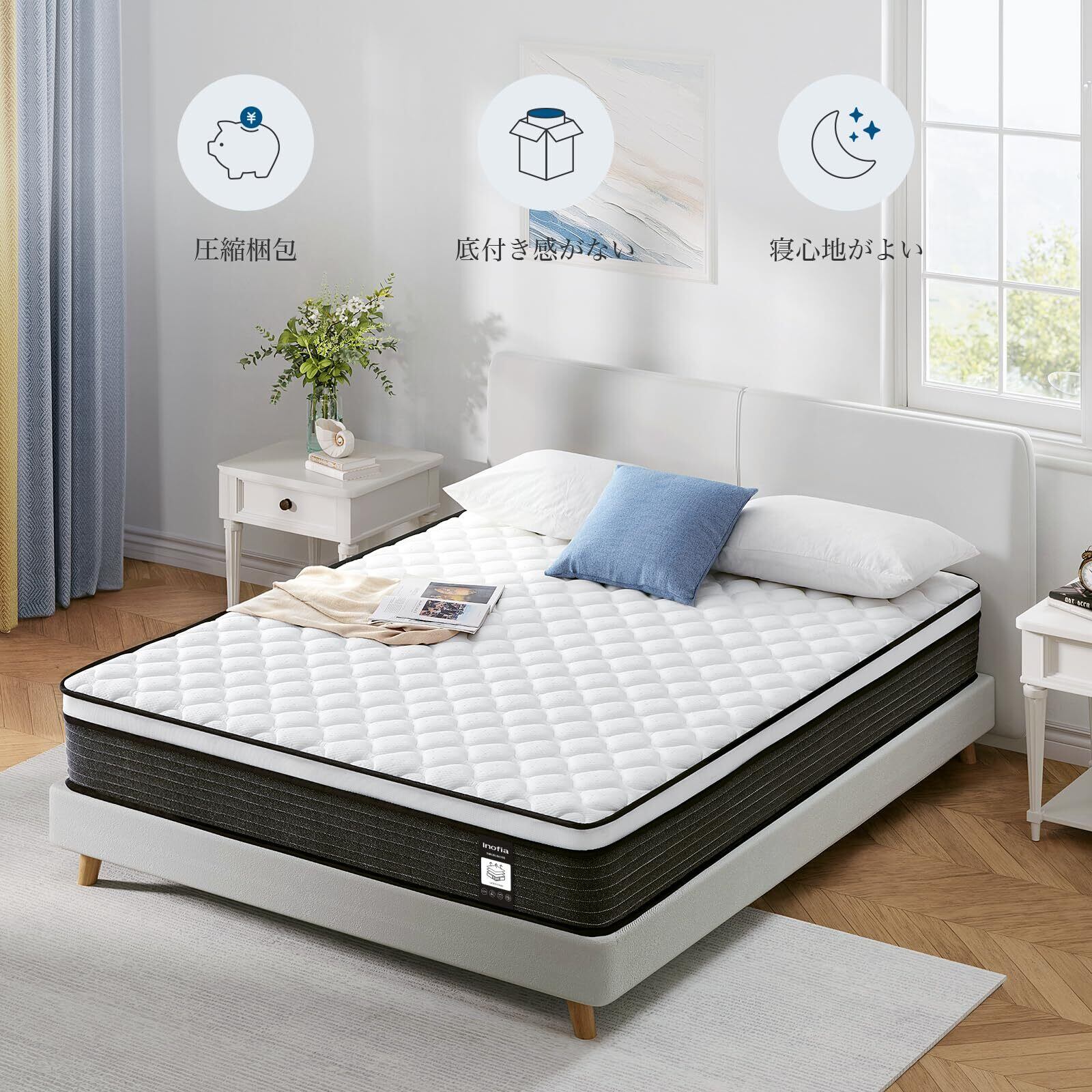 Inofia マットレス セミダブル マットレス専門ブランド 高反発マットレス 極厚25cm ベッドマットレス ポケットコイル 竹炭ラテックス 体圧分散 通気性 抗菌防臭加工 快適睡眠 高耐久性 圧縮梱包 持ち運び便利 底付き感無し 腰の負担を軽減 硬い