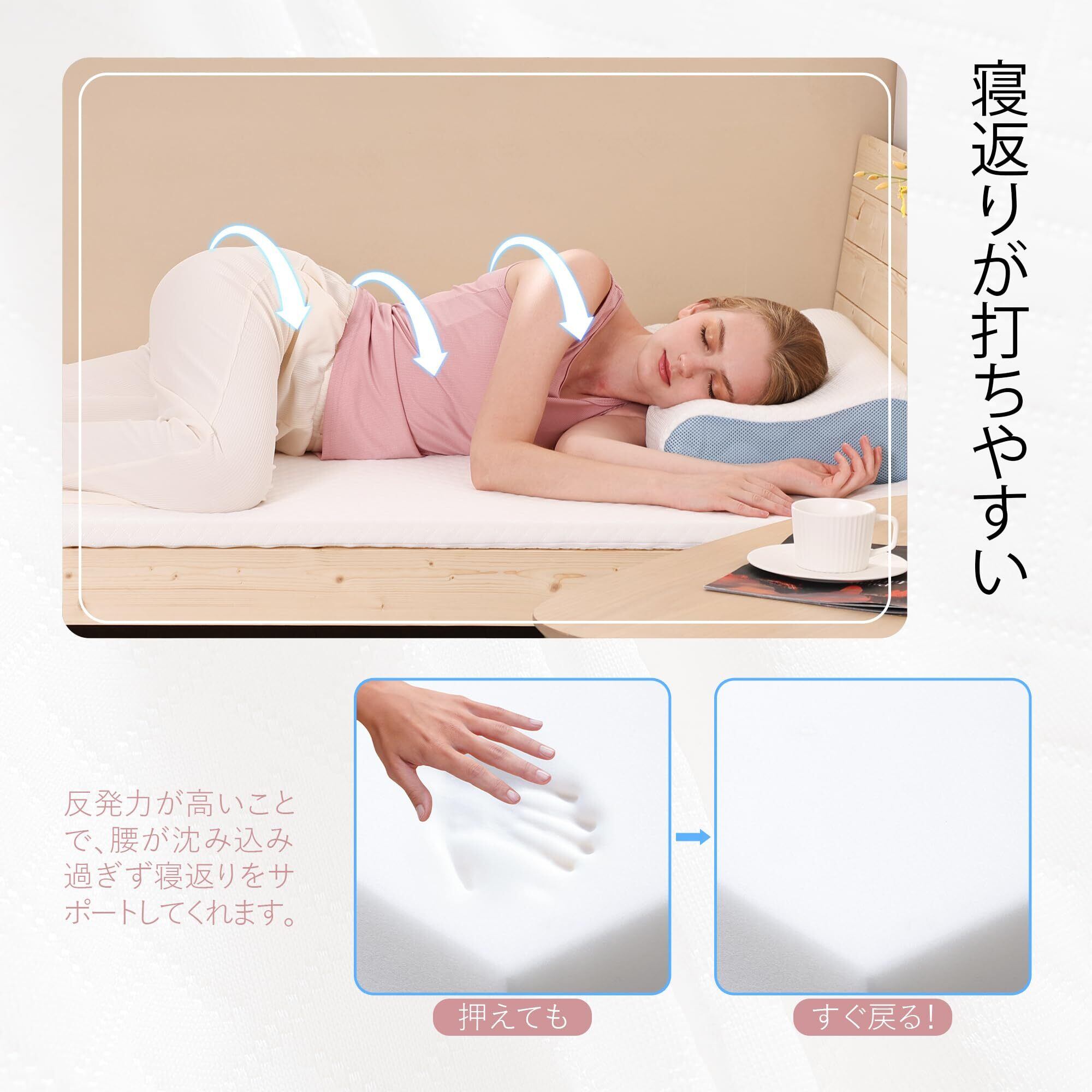 WELLFLEX 高反発マットレス 腰痛対策 快適な硬めの寝心地 肩・腰の負担軽減 マットレストッパー 寝返りを打ちやすい 敷きマットレス 通気性がよい 滑り止め 洗えるカバー マットレス シングル 密度25D 硬さ190N 195*97*3CM ロール状