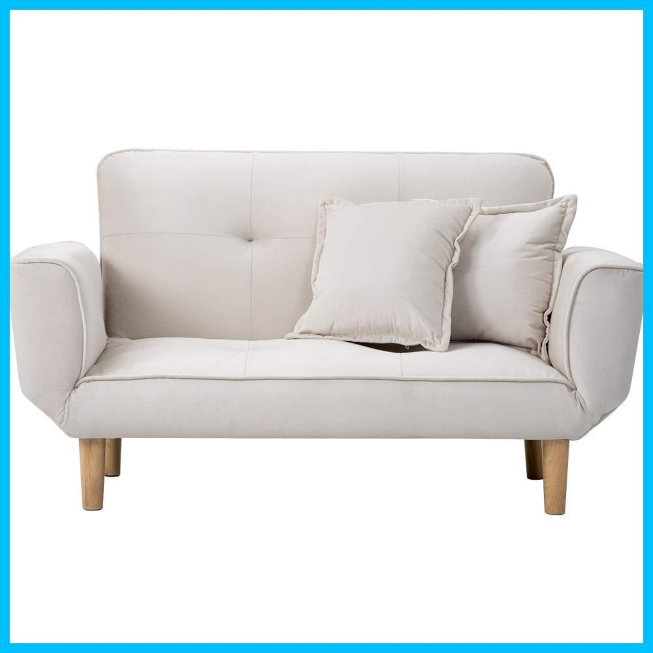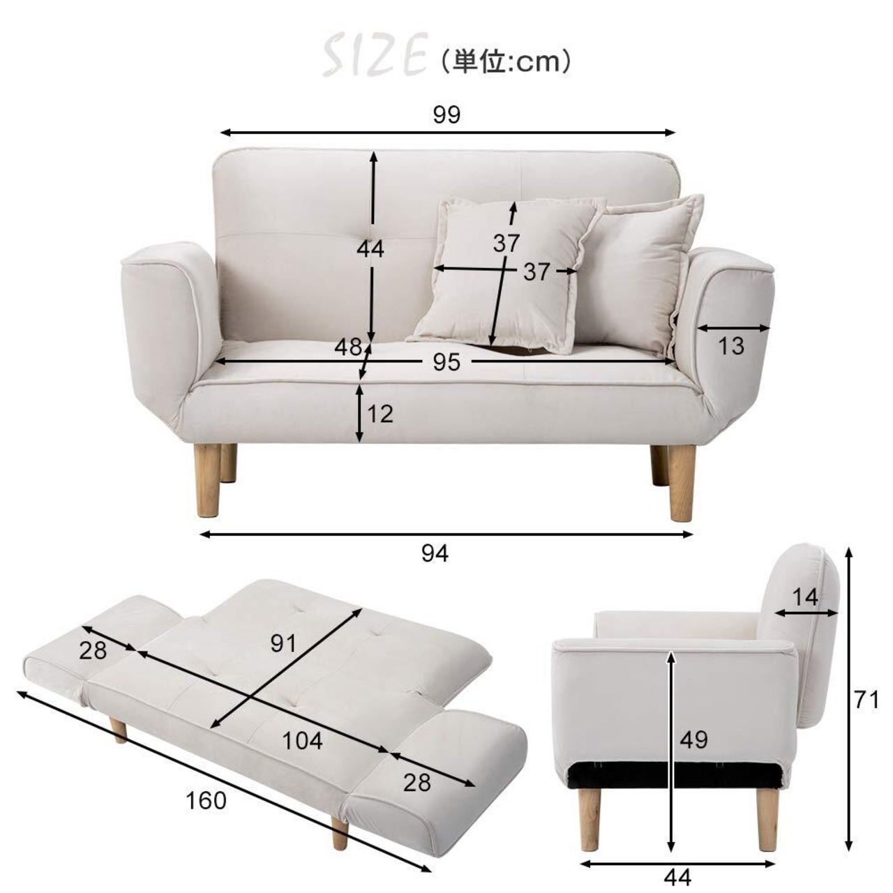 オーエスジェイ(OSJ)ソファー 2人掛け ソファーベッド sofa 抱きまくら2個付き ベージュ ベロア 北欧 背もたれ/アーム5段可動 天然木脚 肘付き コンパクト おしゃれ 新生活 一人暮らし WF197135AAA