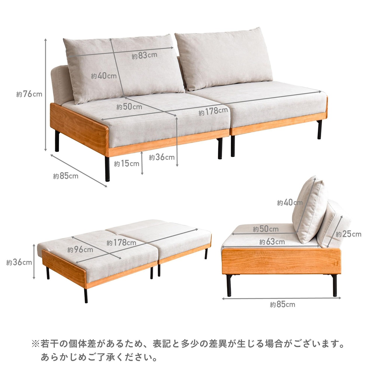 【特価セール】VENTOTA ソファー 2人掛け ソファーベッド ベッドソファー ソファベット 一人暮らし ベッドになるソファソファ ソファベッド 二人がけ ローソファ ローソファー ベッド ベット カウチ リクライニング 分割 セパレートおしゃれ 北欧 ウッドフレーム 幅約178cm インテリア家具 Licsa GE